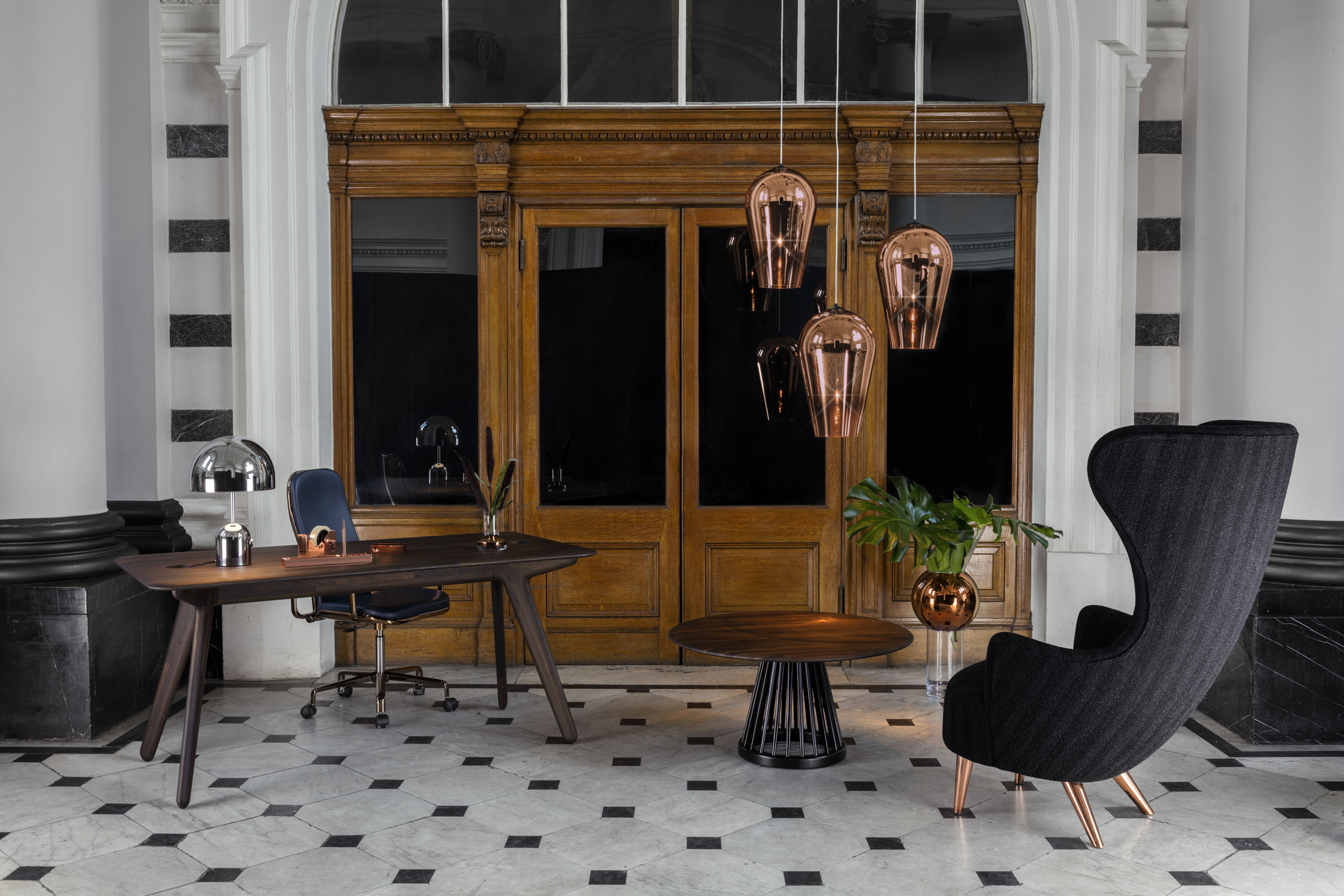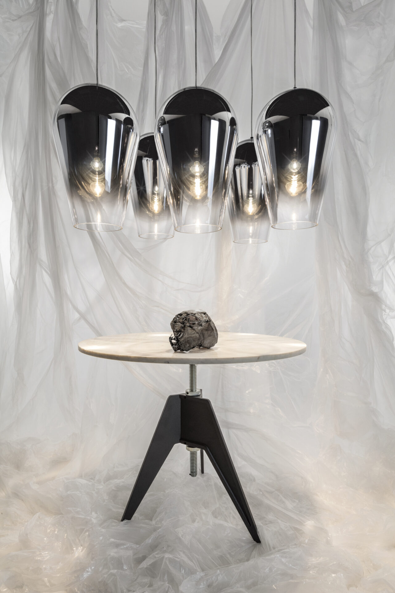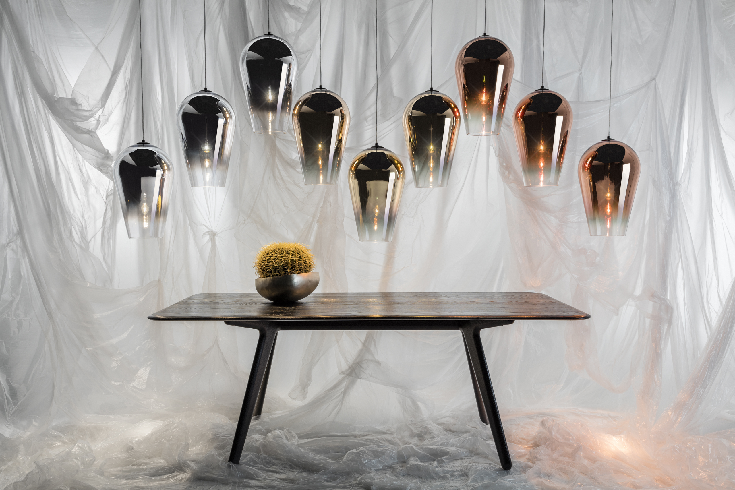 A blow moulded polycarbonate light cannon that focusses the lightbulb’s output, acting as the ultimate oversized spotlight. Available in chrome, copper and gold.