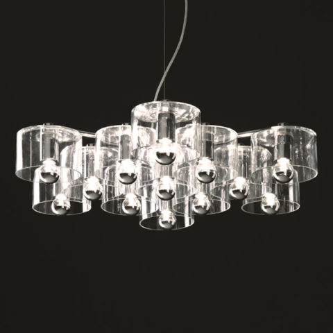 Instead, in the suspension version of the lamp, Fiore twirls free, with a combination of either 13 or 7 luminaires – according to the variation chosen.