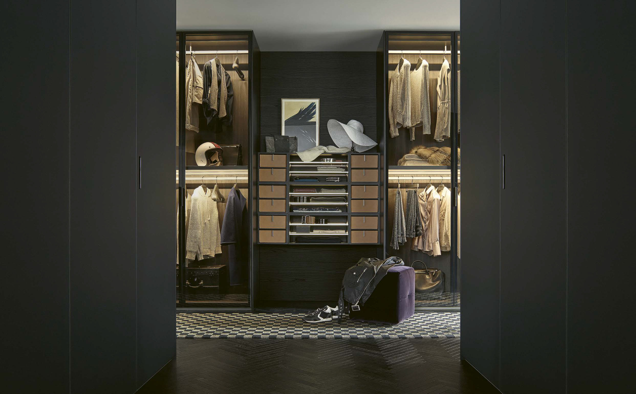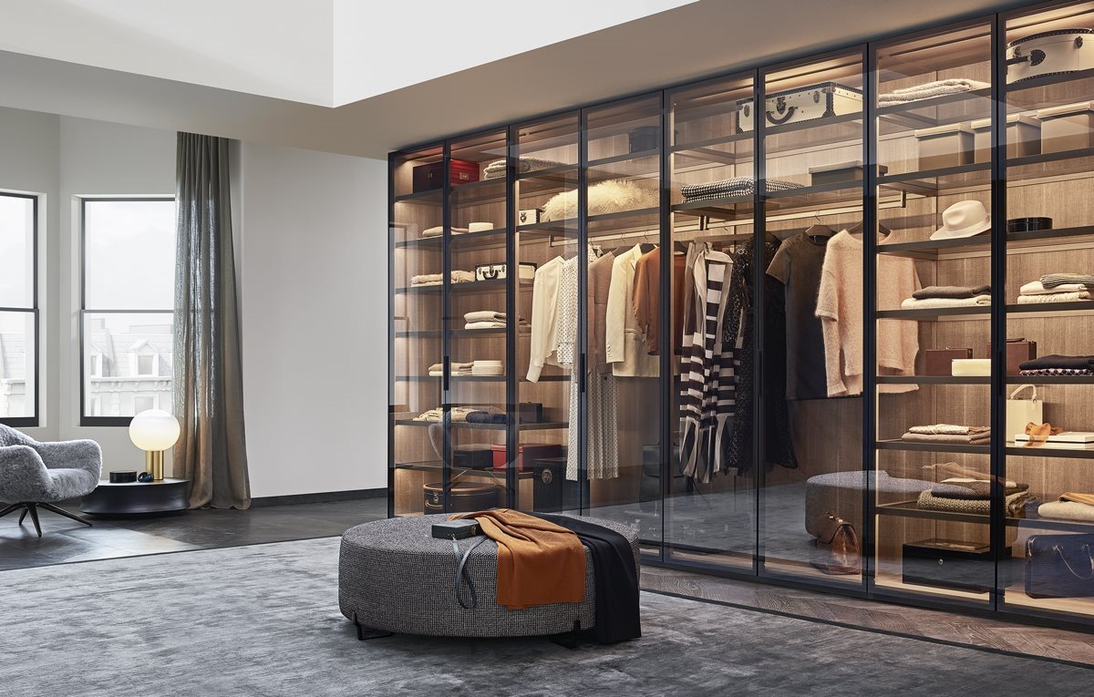 The wardrobe in the name of lightness. Fitted, design Rodolfo Dordoni, becomes the basic element of evolved interior design projects, where the wardrobe enhances the brightness of the spaces thanks to the thinness of the structure.