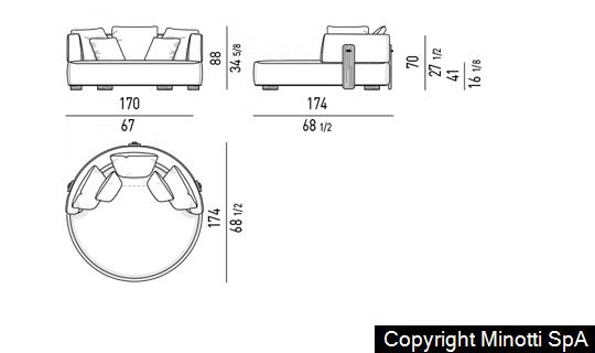 The structure of Florida is in metal, appropriately treated to resist corrosion, and it is immersed in a foam padding, then covered in waterproof fibre and fabric, making it weatherproof.