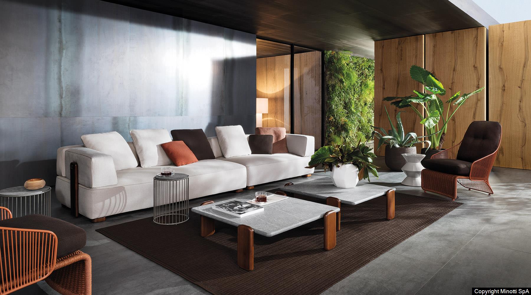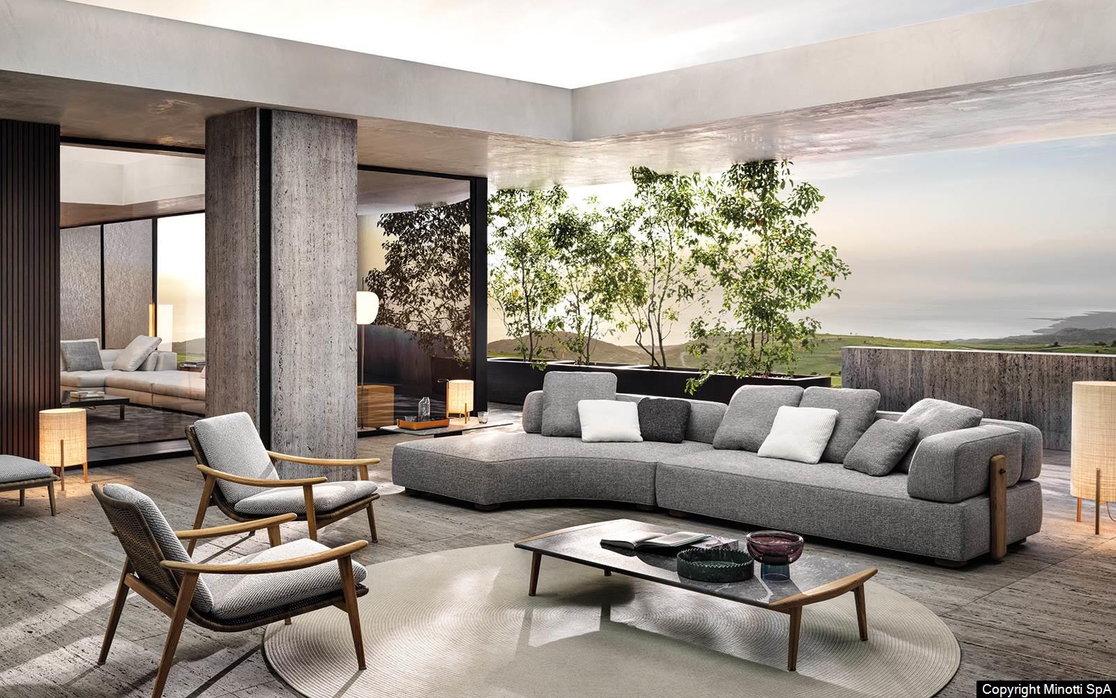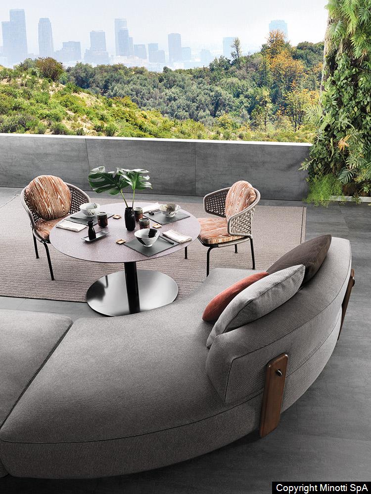 Natural teak is the wood chosen for Florida to complement the mood of the 2020 Collection and design living compositions blurring the boundaries between indoors and outdoors.