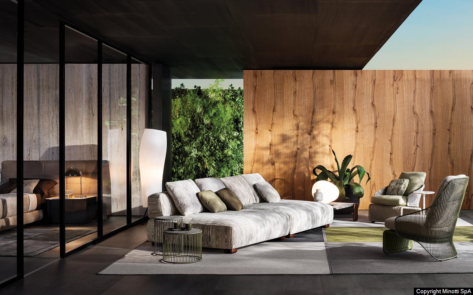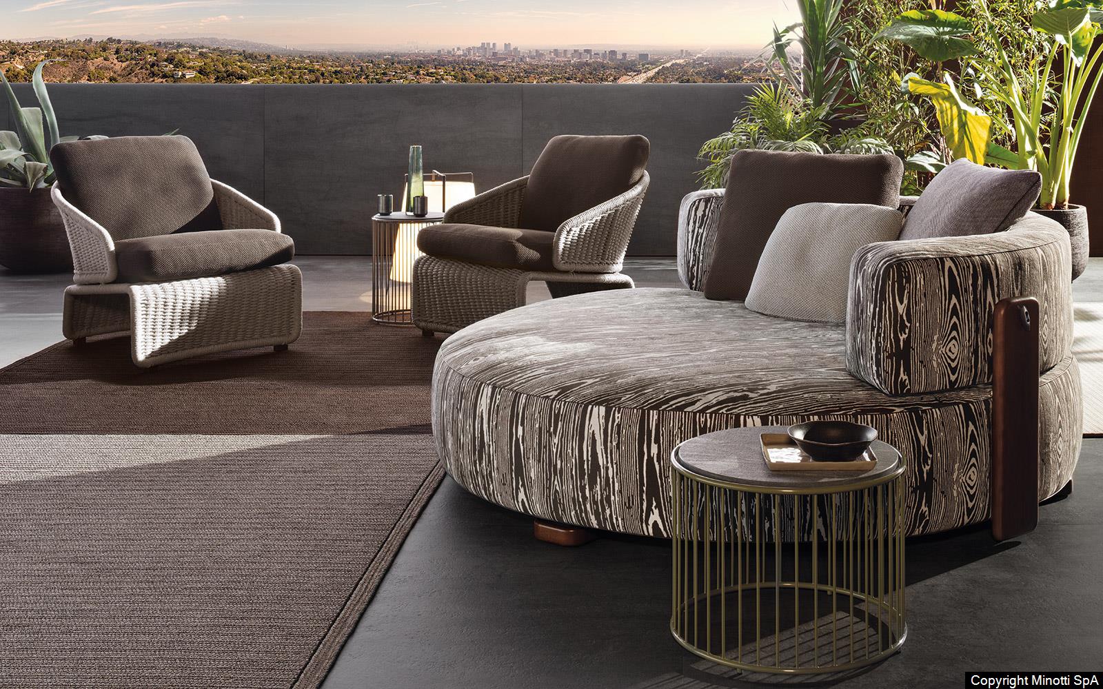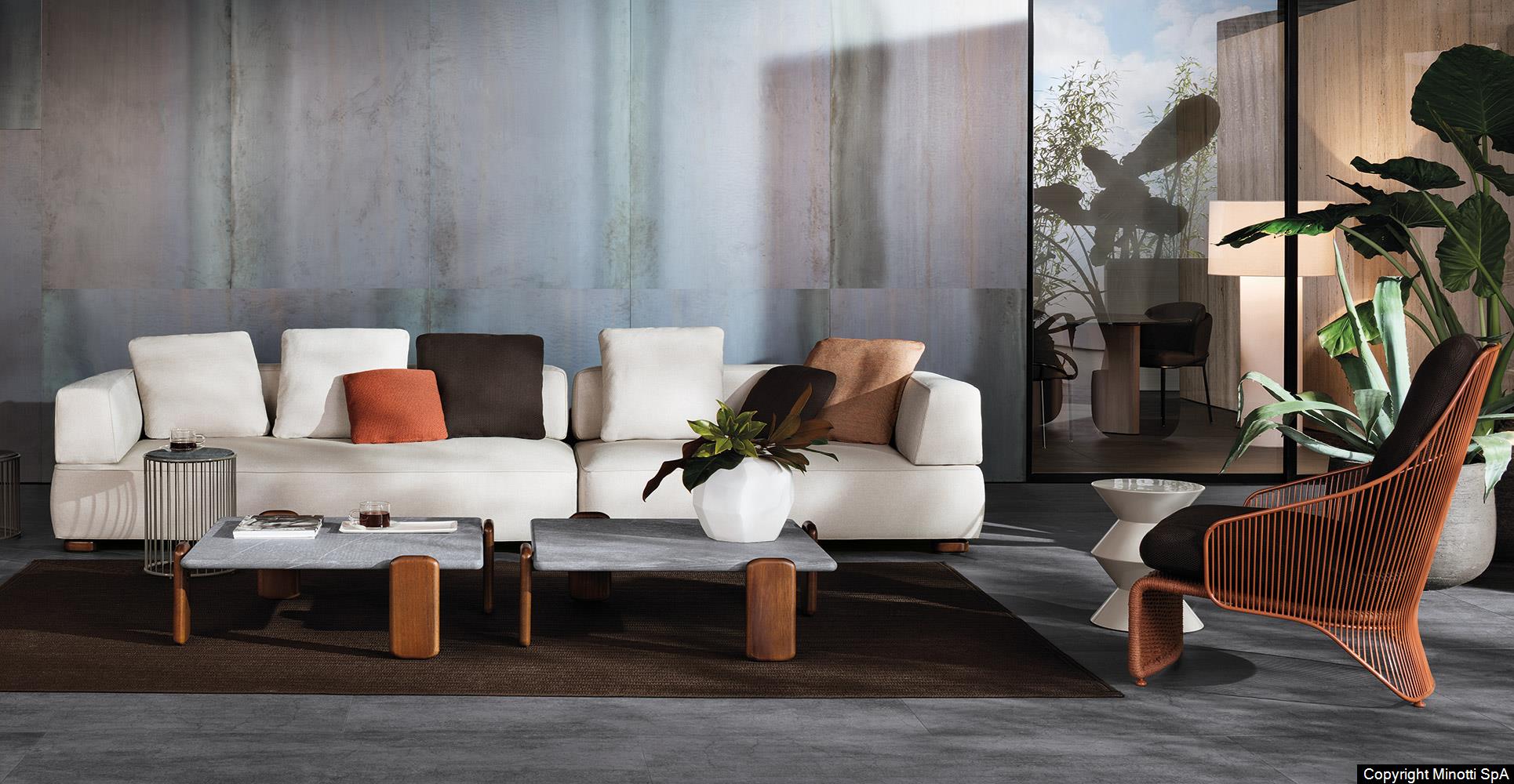 Natural teak is the wood chosen for Florida to complement the mood of the 2020 Collection and design living compositions blurring the boundaries between indoors and outdoors.