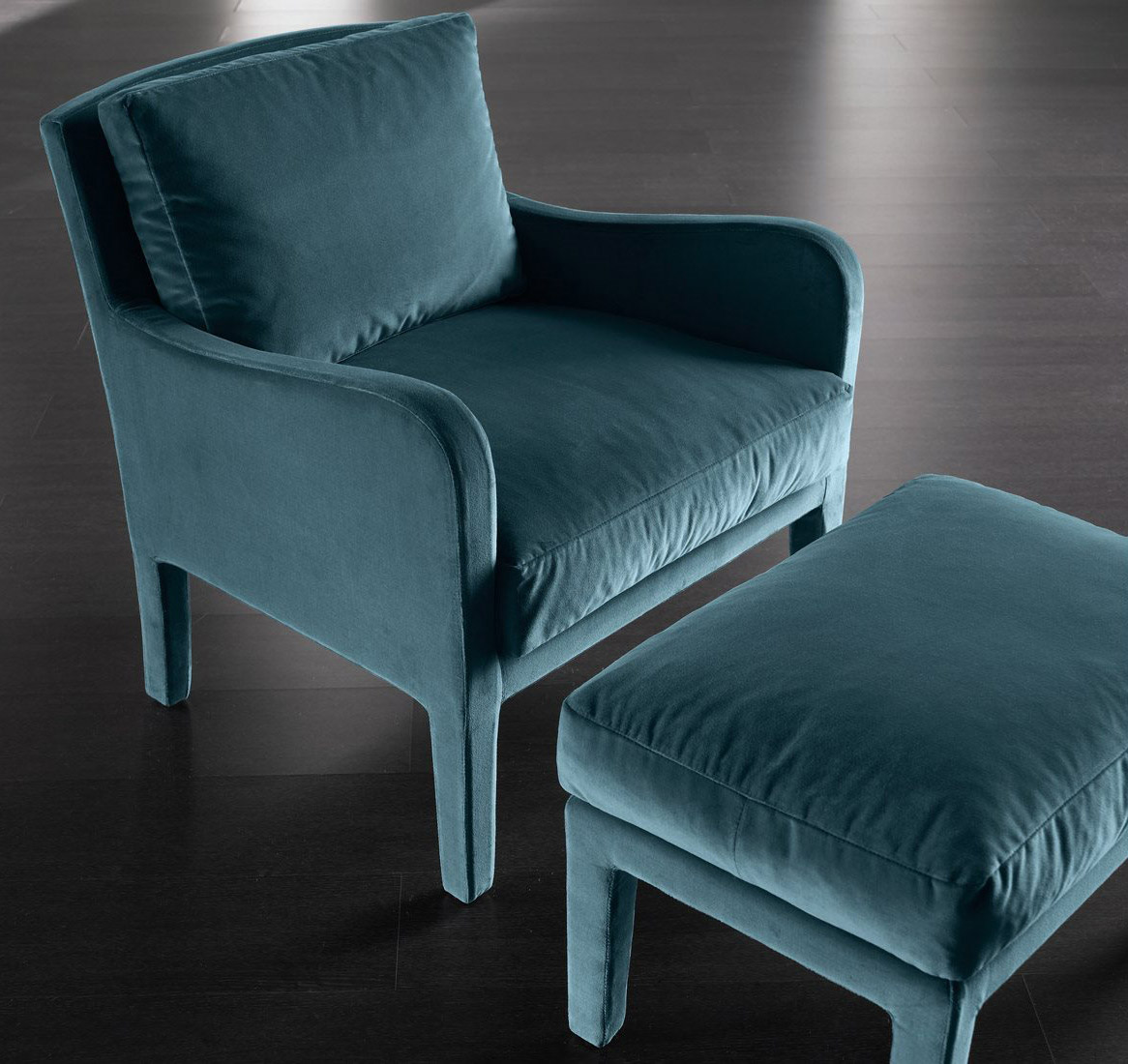 Small armchair and ottoman with non-removable cover