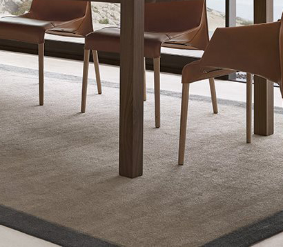 Hand made carpet (Hand Loom technique). Cotton weave, bamboo silk fur – 8 cm edge with shaved wool fur.