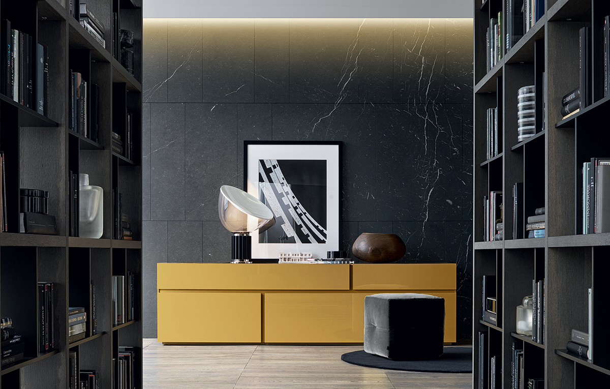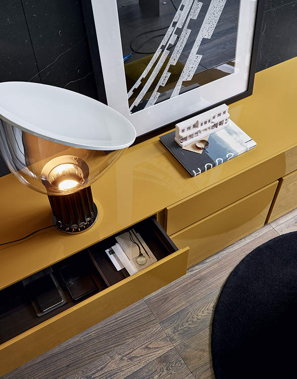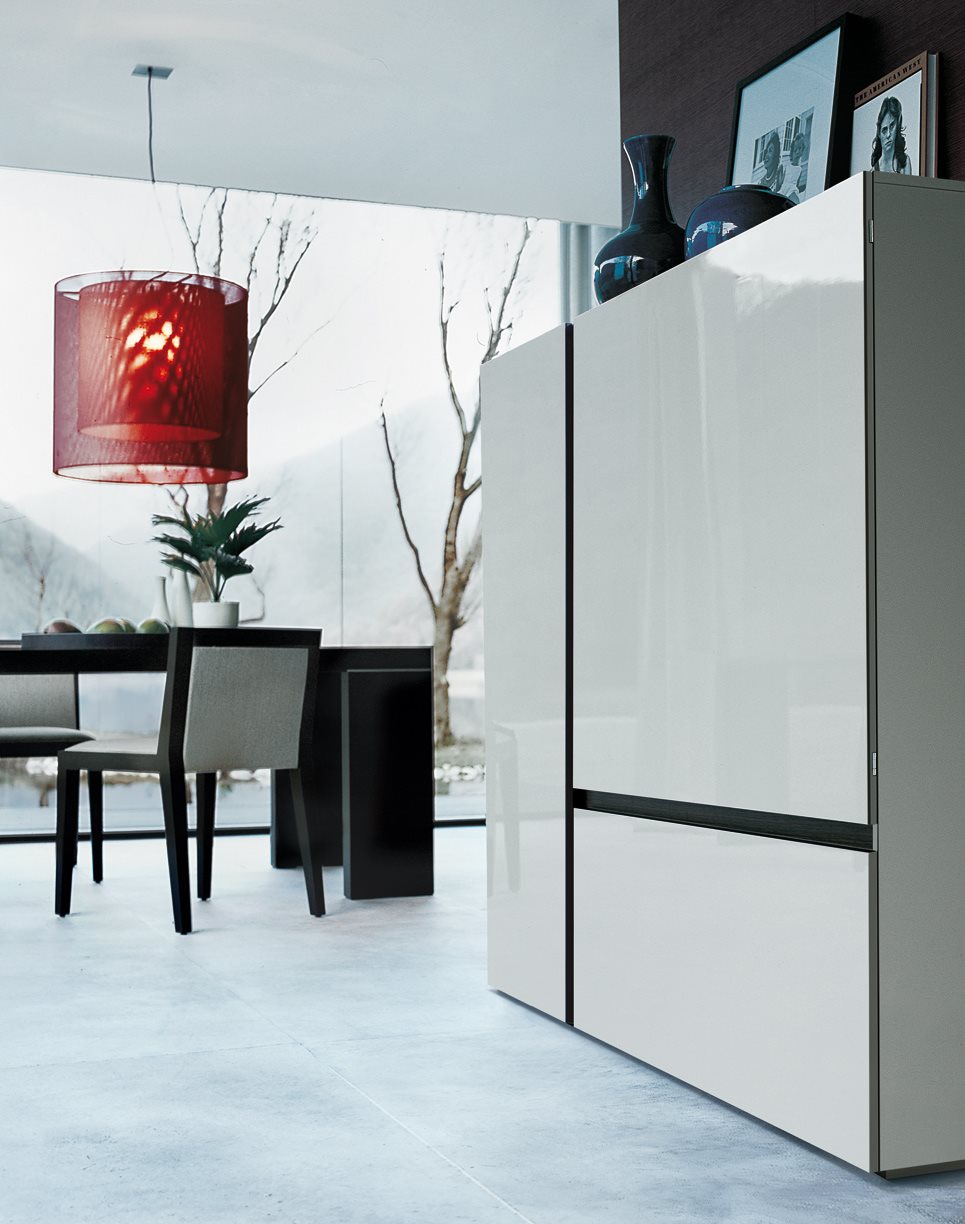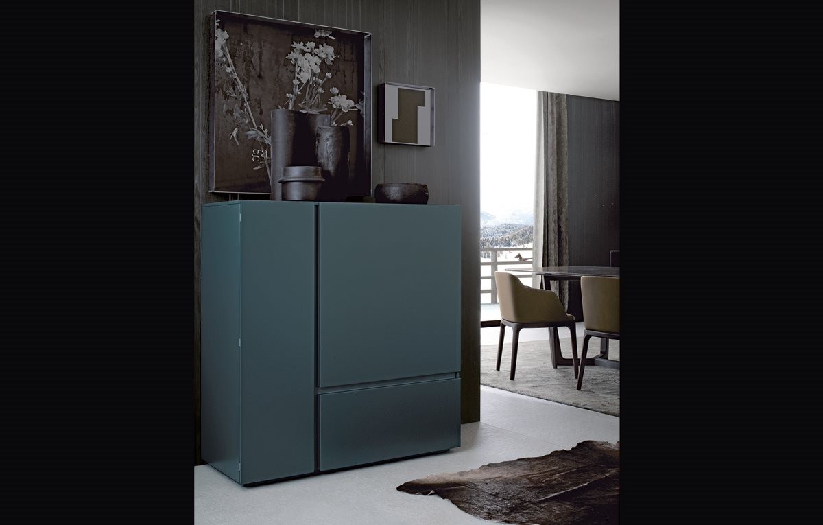 Sideboard designed by Carlo Colombo. A product of great precision and with stylized and geometric shapes. Structure with strong and plain lines.