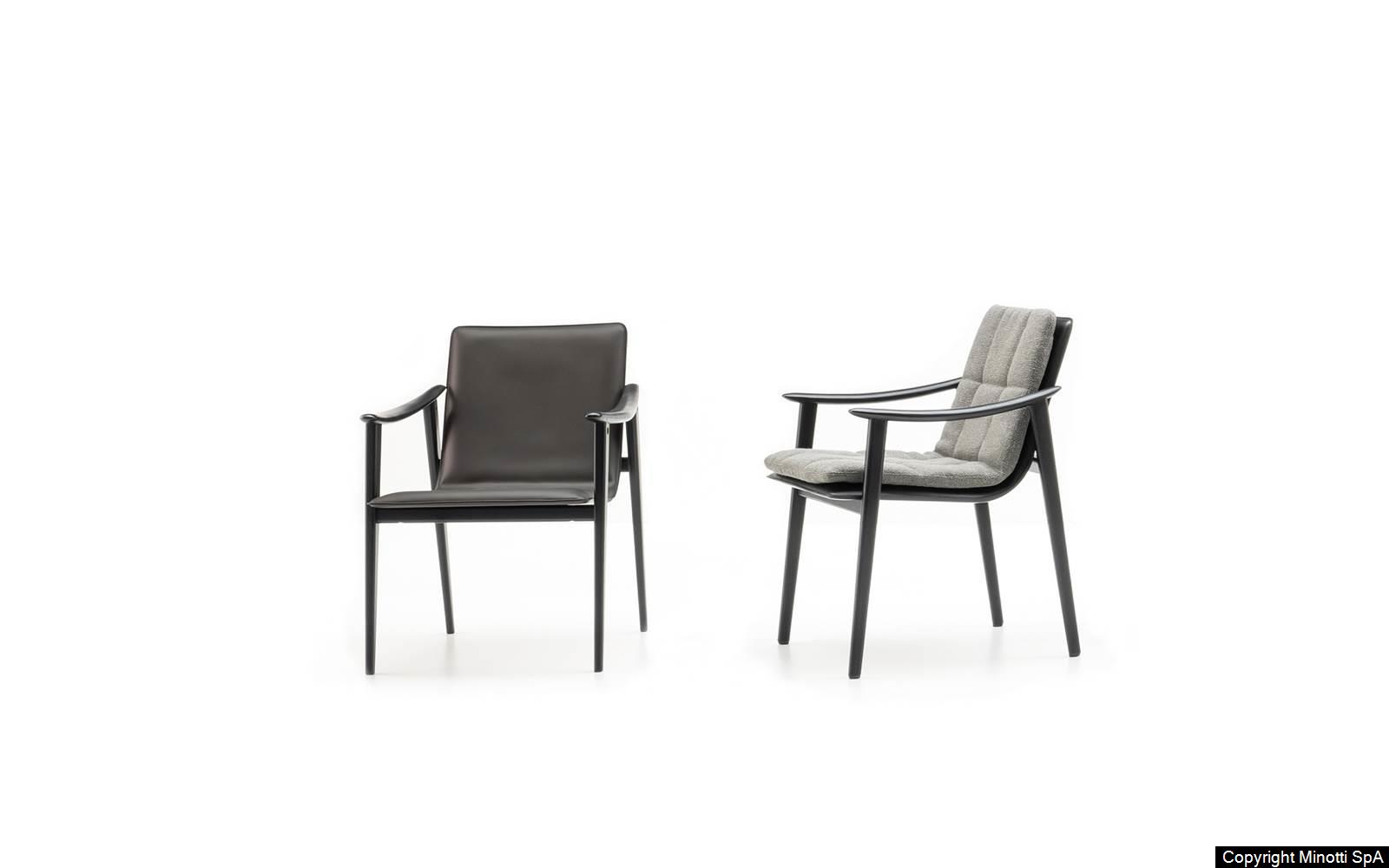 The signature element of the Fynn seats is the armrest, elongated and slightly curved, rounded and smooth to the touch, 100% handmade. Its precise, well-defined line identifies the whole family of seats, in the two Fynn and Fynn Saddle-Hide versions. Covered with the exclusive fabrics and saddle-hides in the collection, it fully expresses the high level of the elegant sartorial process which has always been Minotti’s distinguishing mark.