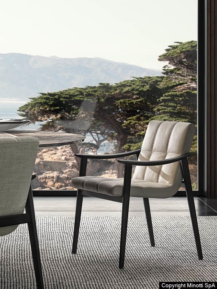 The Fynn conceived for the dining area includes the version with fully padded shell and, alternatively, the Saddle-Hide version with or without cushion.