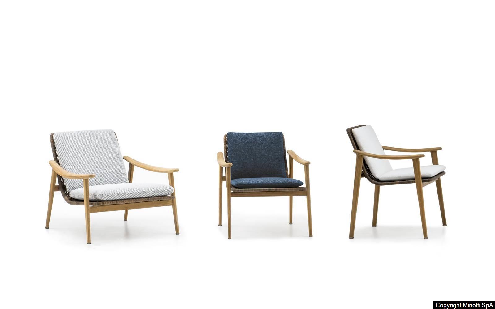 Characterised by an interwoven frame that hosts soft seat and backrest cushions, Fynn has in the armrest its signature element.