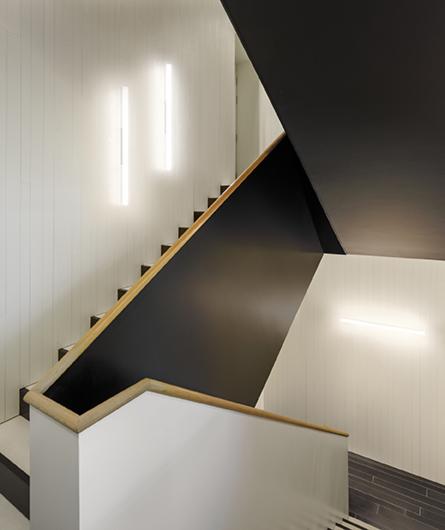 The Halo Wall sconce lights are a Martín Azúa design. The wall lamp traces the outline of the light projected between the lamp and its diffuser to become a unified whole.