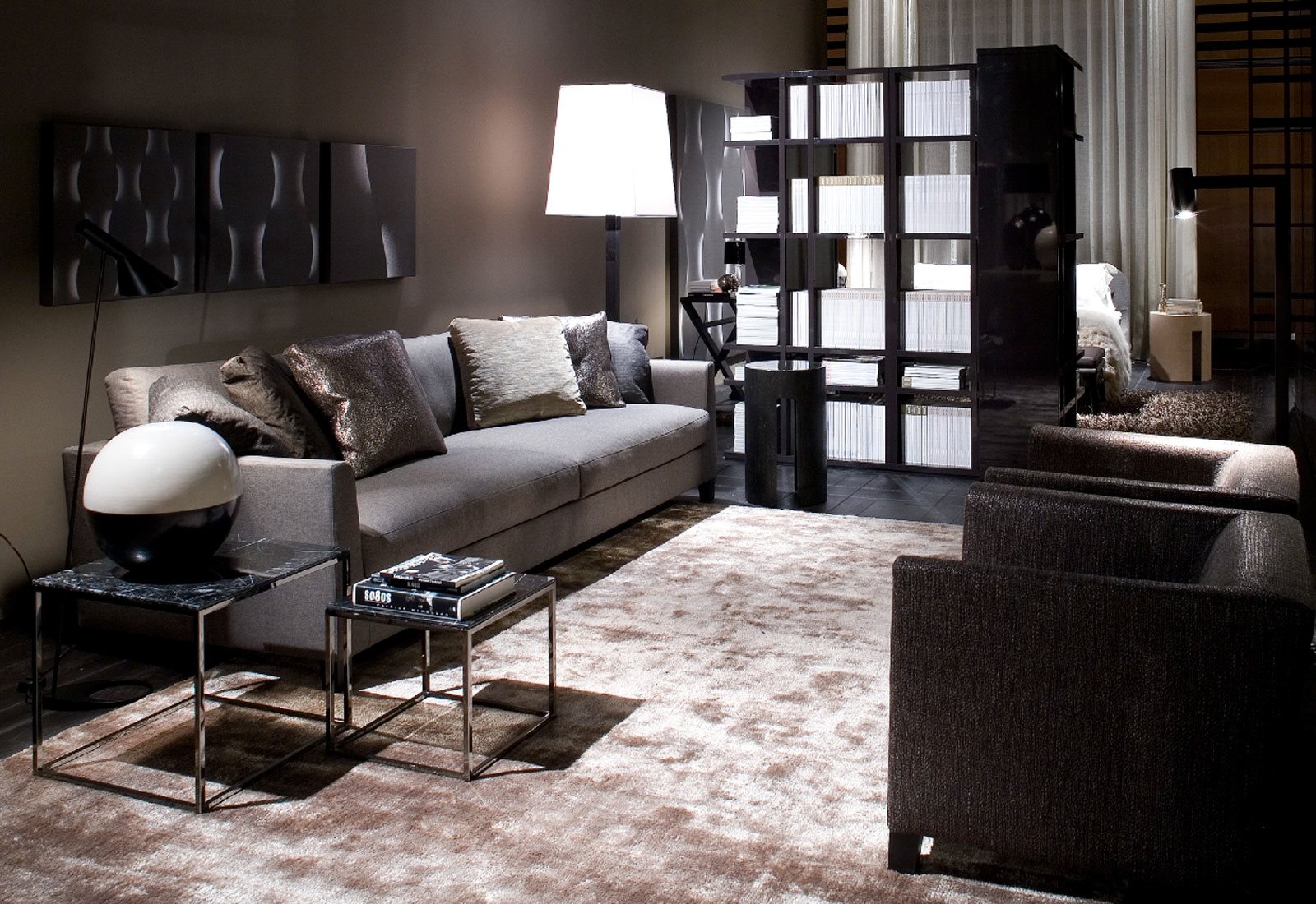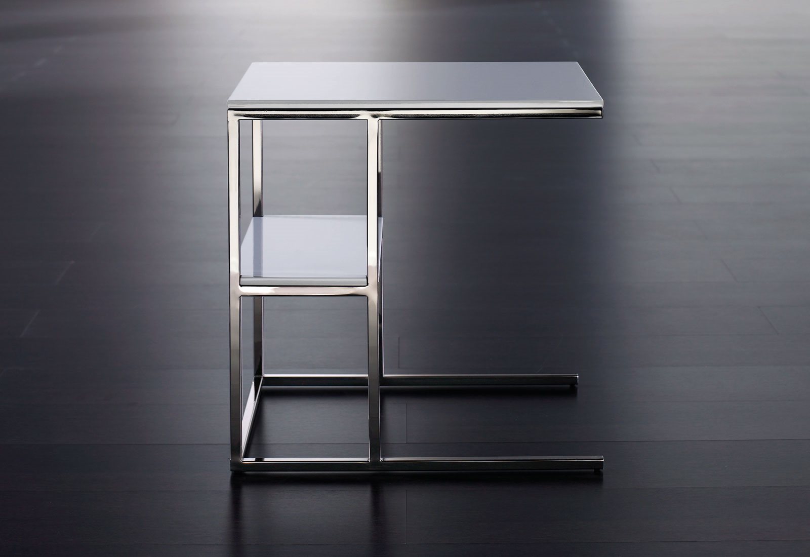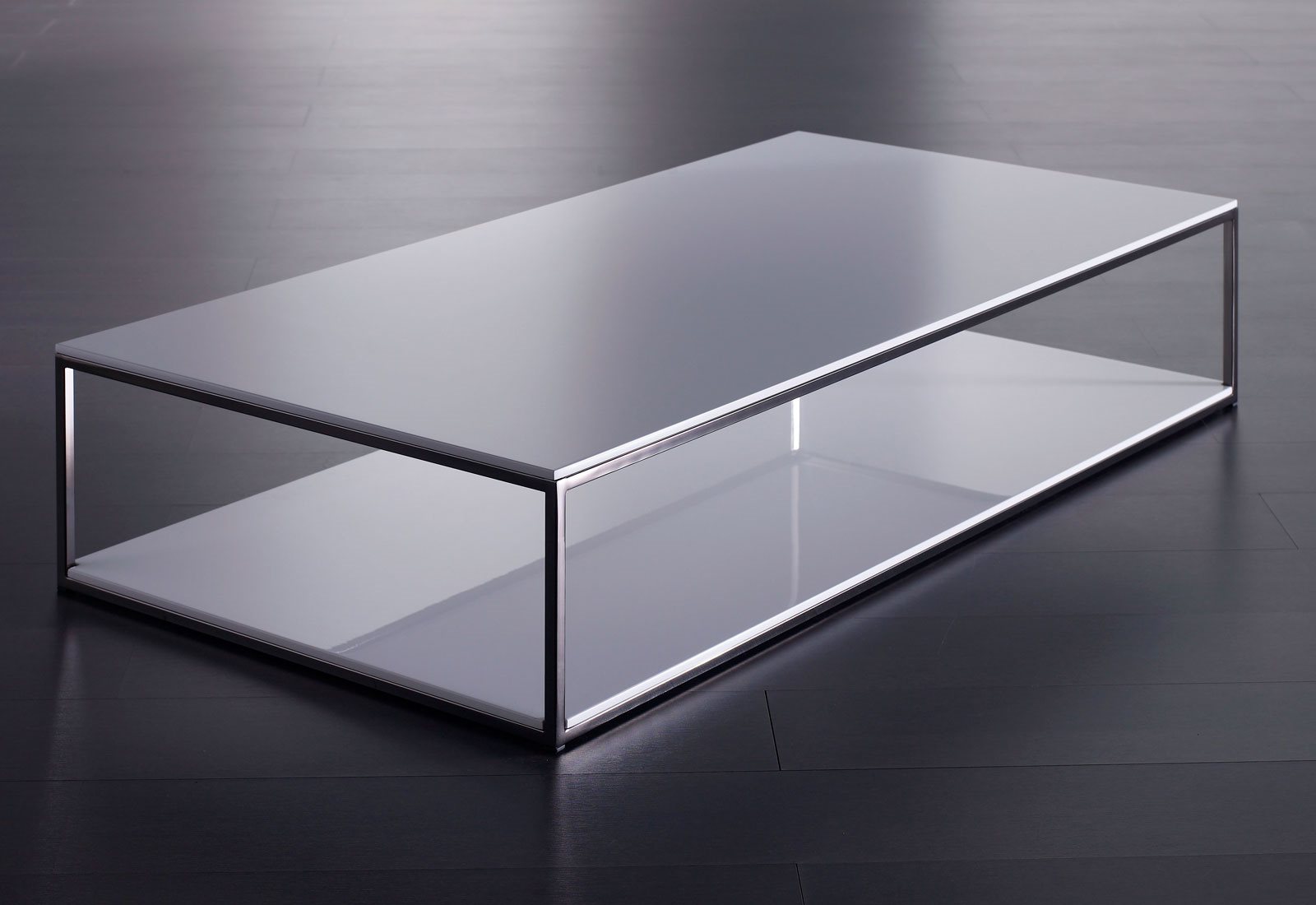 A wide collection of passkey, very versatile low tables, which are available in various sizes. The form is displaying an extreme graphic lightness, the frame is proposed in different variations: metal with transparent varnish matt varnished metal and glossy black nickel.