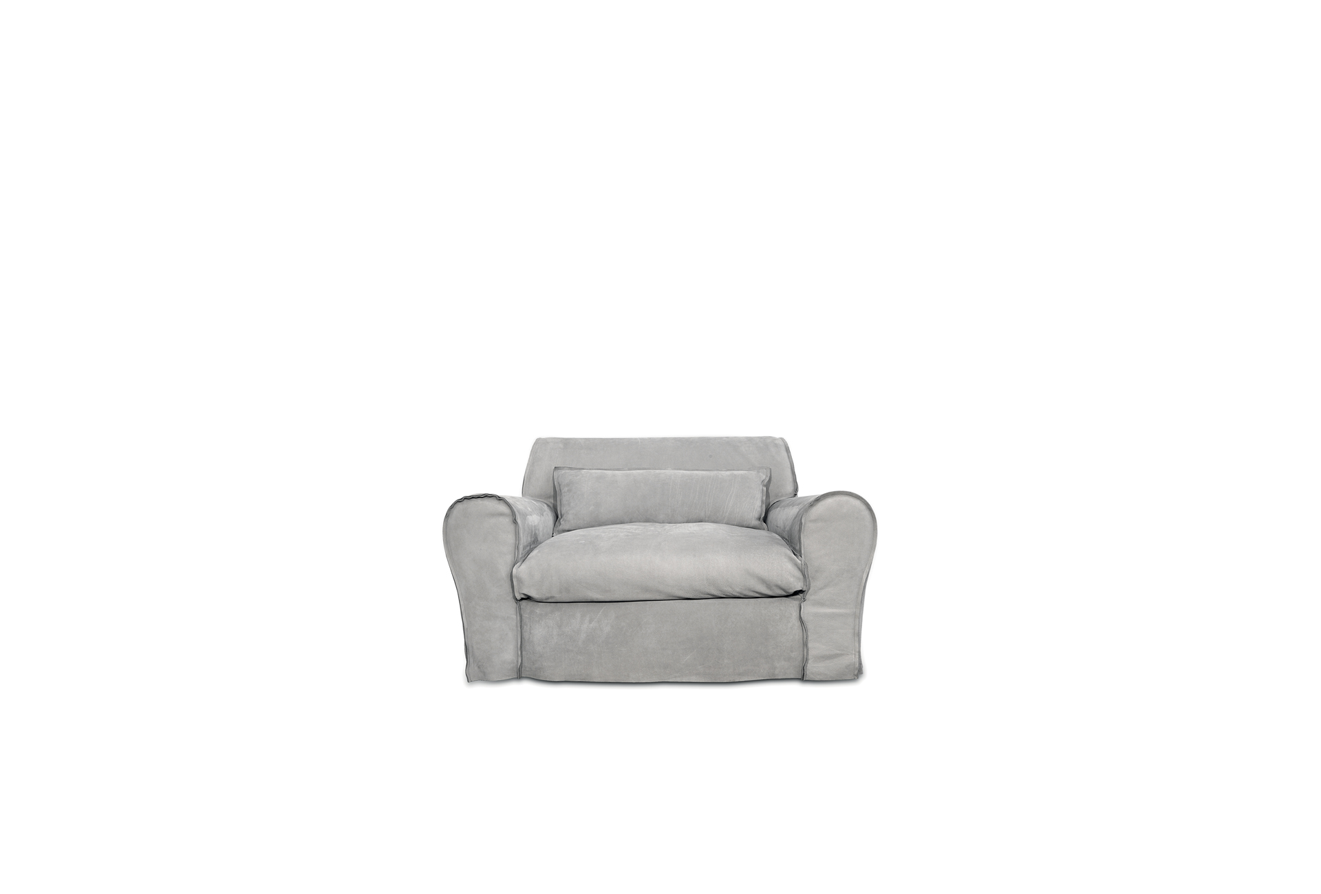 Frame in double-panelled pine and poplar. Base in walnut-stained beech. Padding in differentiated density polyurethane foam and cover made with acrylic fibre. Spring base with cross-woven, coated rubber elastic straps. Seat cushions and lumbar support in memofil with viscoelastic chips. Leather upholstery with sharp edge stitching. Available in all soft leathers.