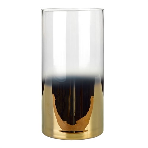 Crafted from gold-coated glass, the Hurricane Half features a gradated appearance. The reflective gold at the bottom gradually gives way to clear glass, providing an eye-catching and elegant container for a candle or floral display.