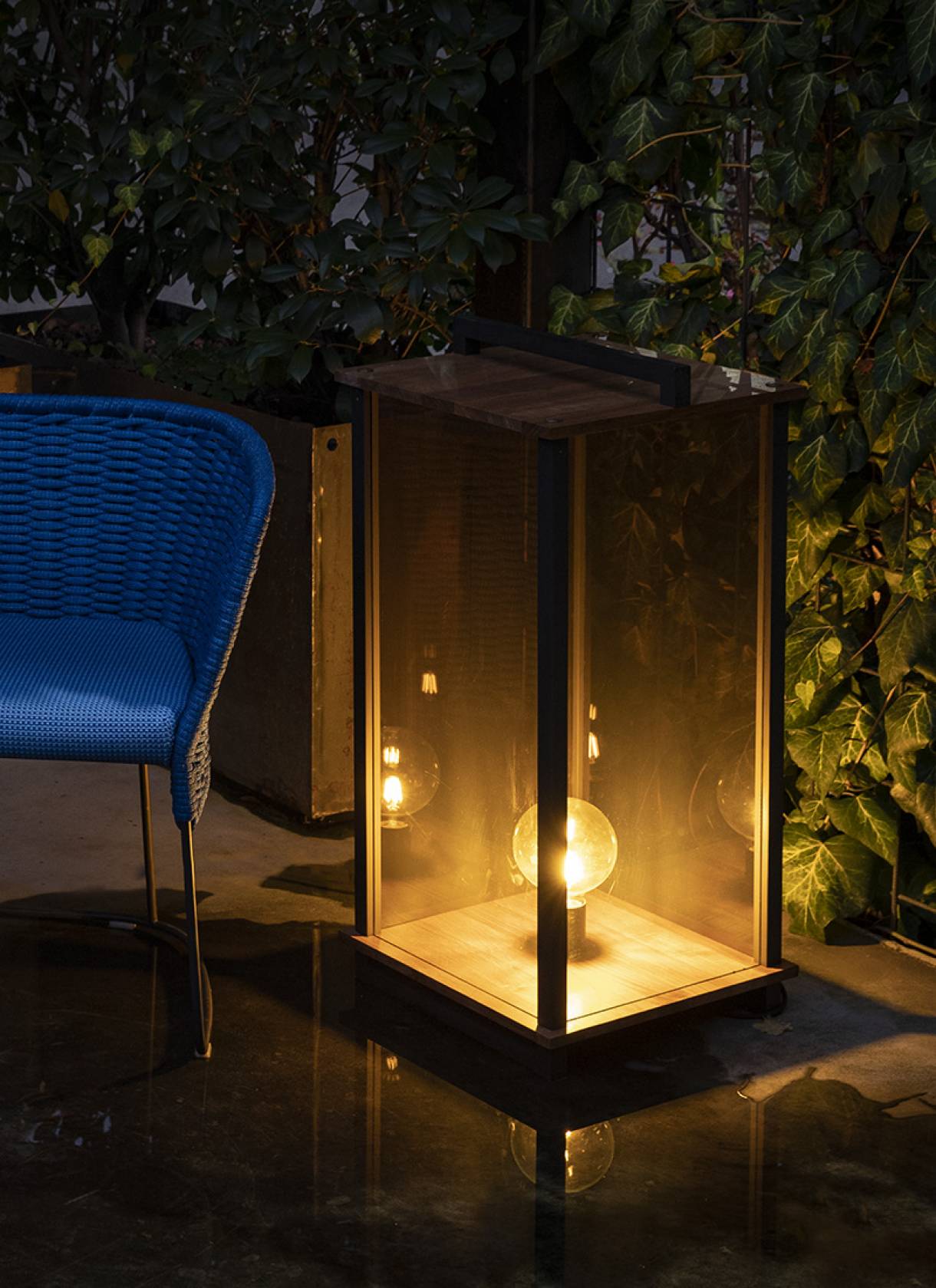A sophisticated cage the light comes out in a beam and spreads all around.