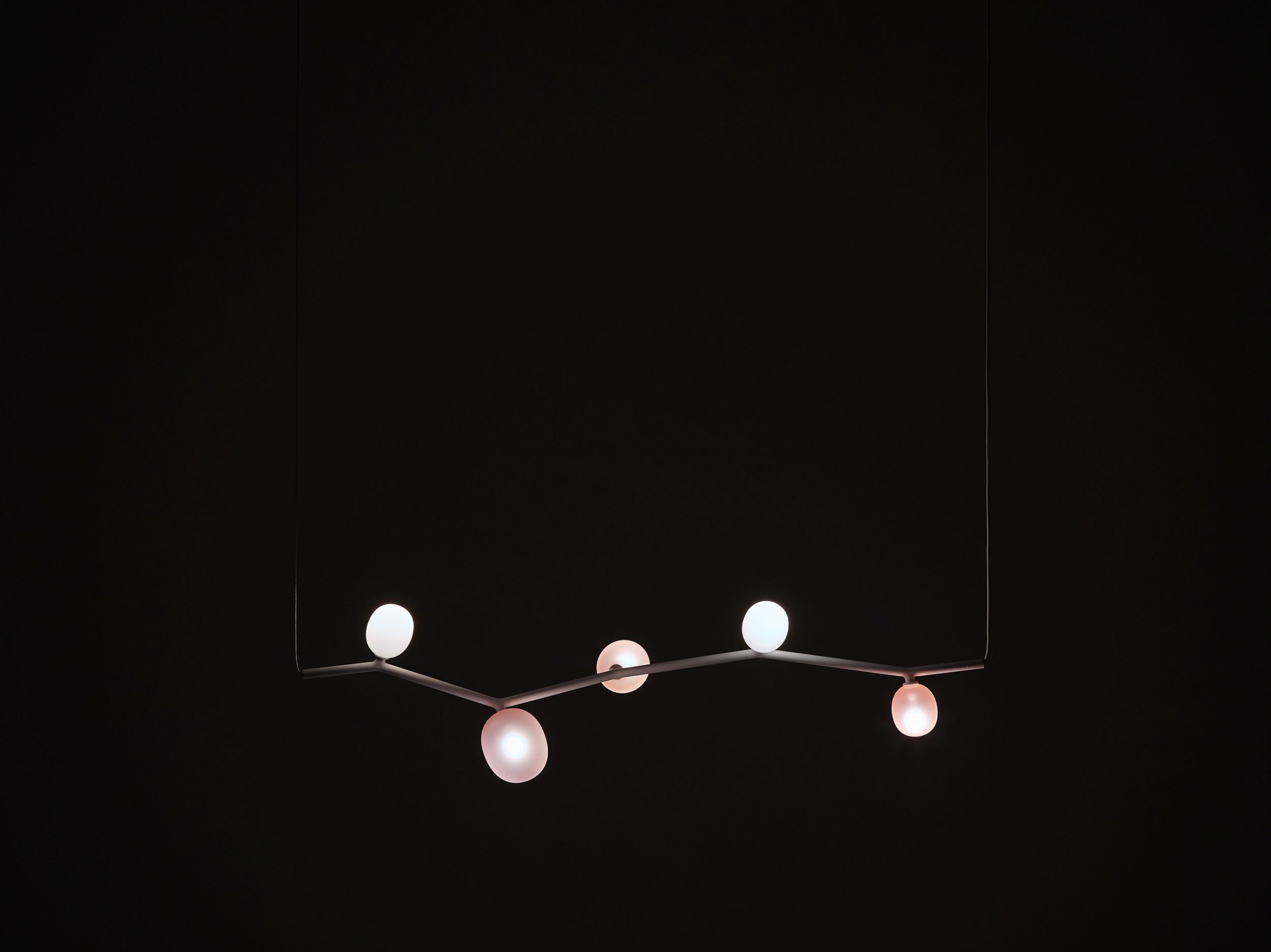 The collection features three sizes in opal or smoke glass. Variable, elegant, and precise in workmanship all the way down to the smallest detail, IVY is a high-tech lighting concept well suited to both commercial and residential applications. In intimate home settings, for example, a single elegant branch can be used, or multiple branches can be joined together to create a curtain of light. IVY has many forms and justly takes its place among artistic, so-called bespoke, lighting installations.