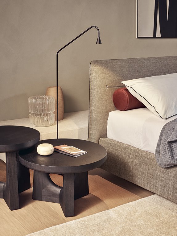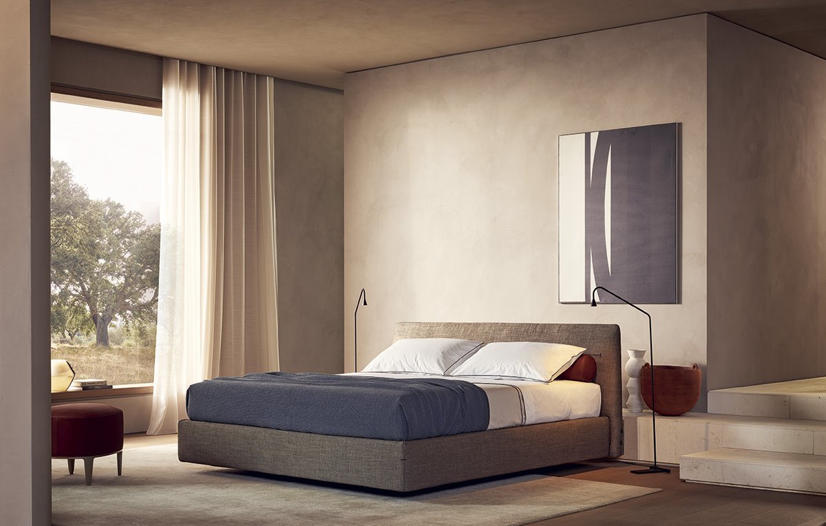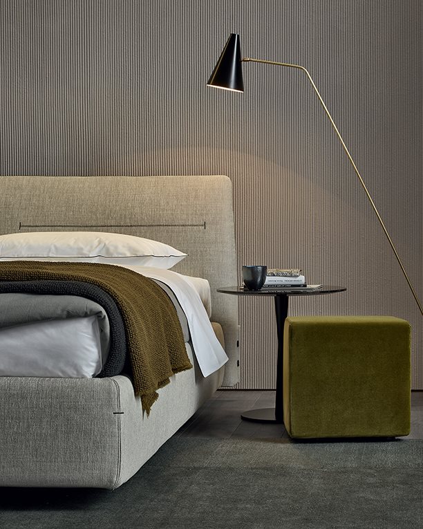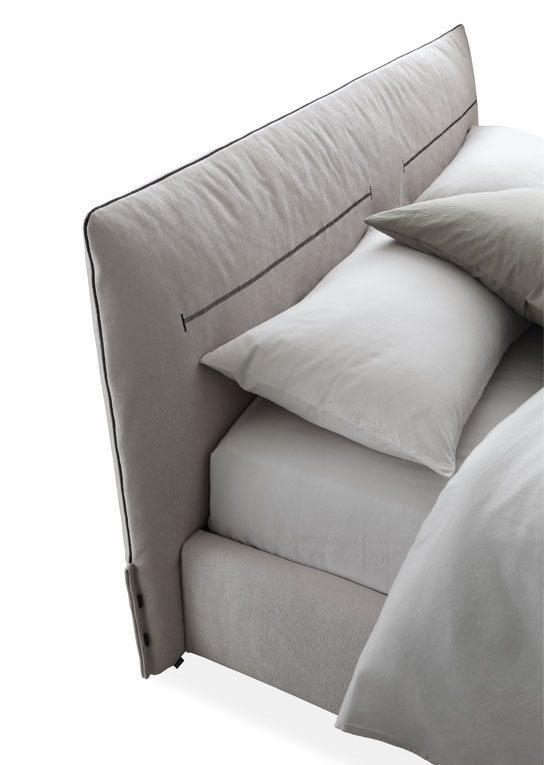 A padded bed to make the night world more and more fascinating: Jaqueline, design Jean-Marie Massaud, is characterized by a soft cover with visible stitching.