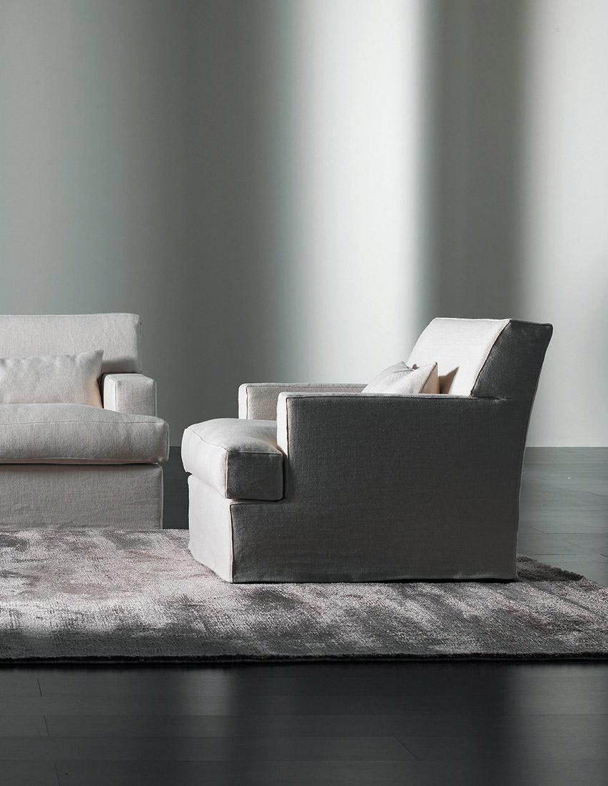 Armchair with completely removable cover, fixed cover for leather version – feet showing