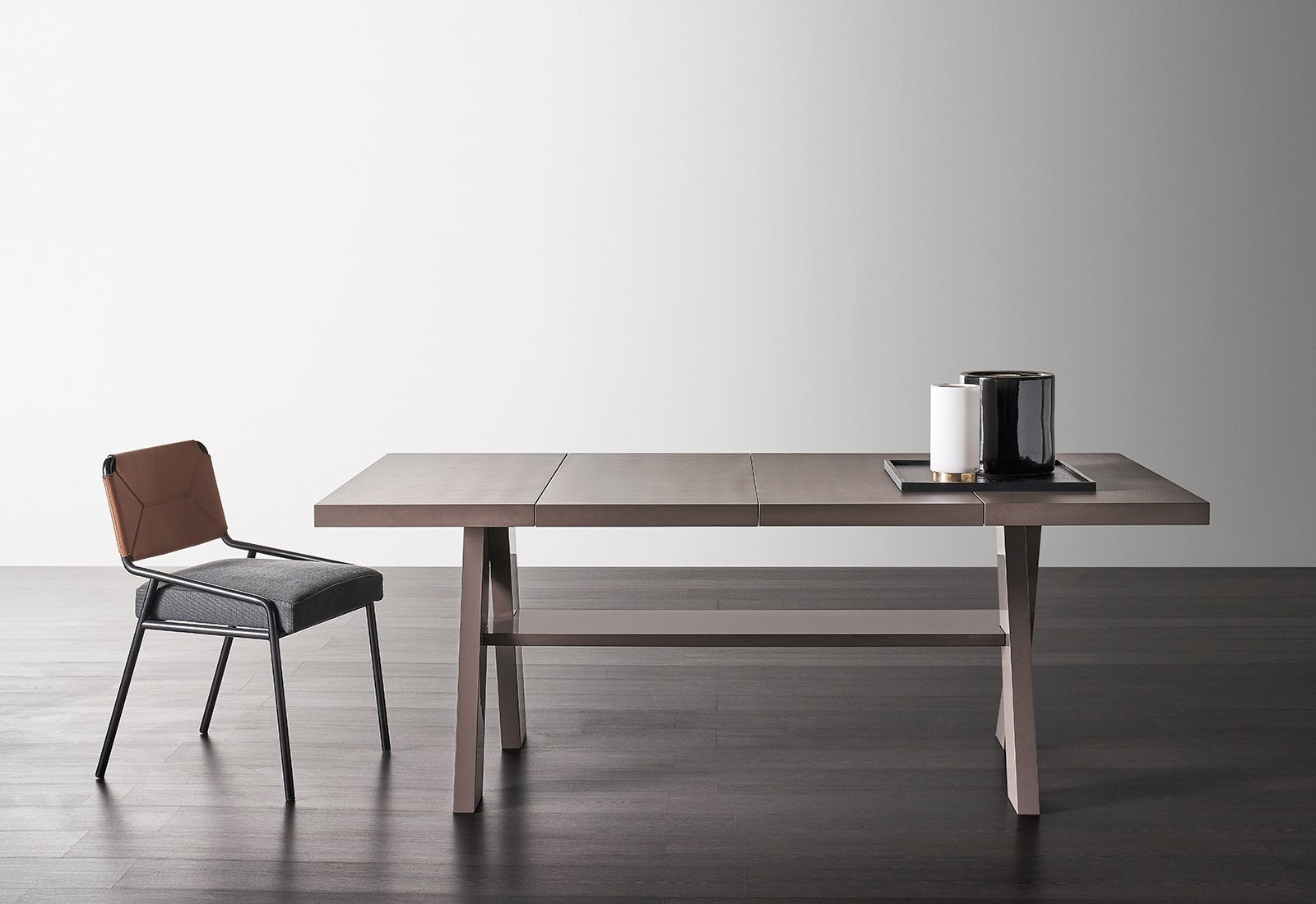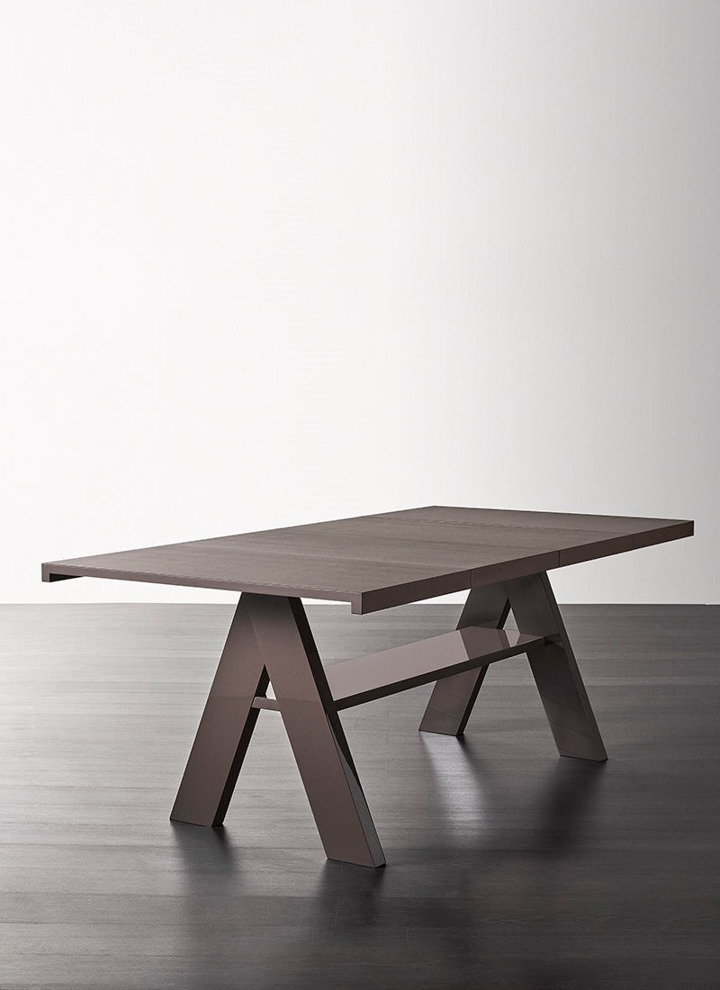 Behind a refined recognizable look, Zeno hides an extremely complex realization phase, given by its asymmetrical tubular structure having large diameter, overlapping and winding so that to generate the three legs and to hold the entire six centimeters thick round top.