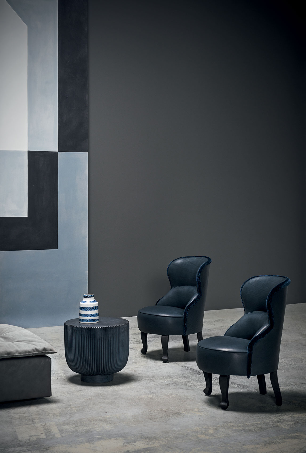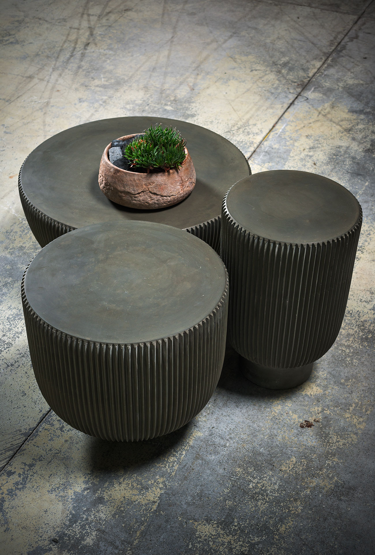 Available in moss green, dove grey and blue concrete.