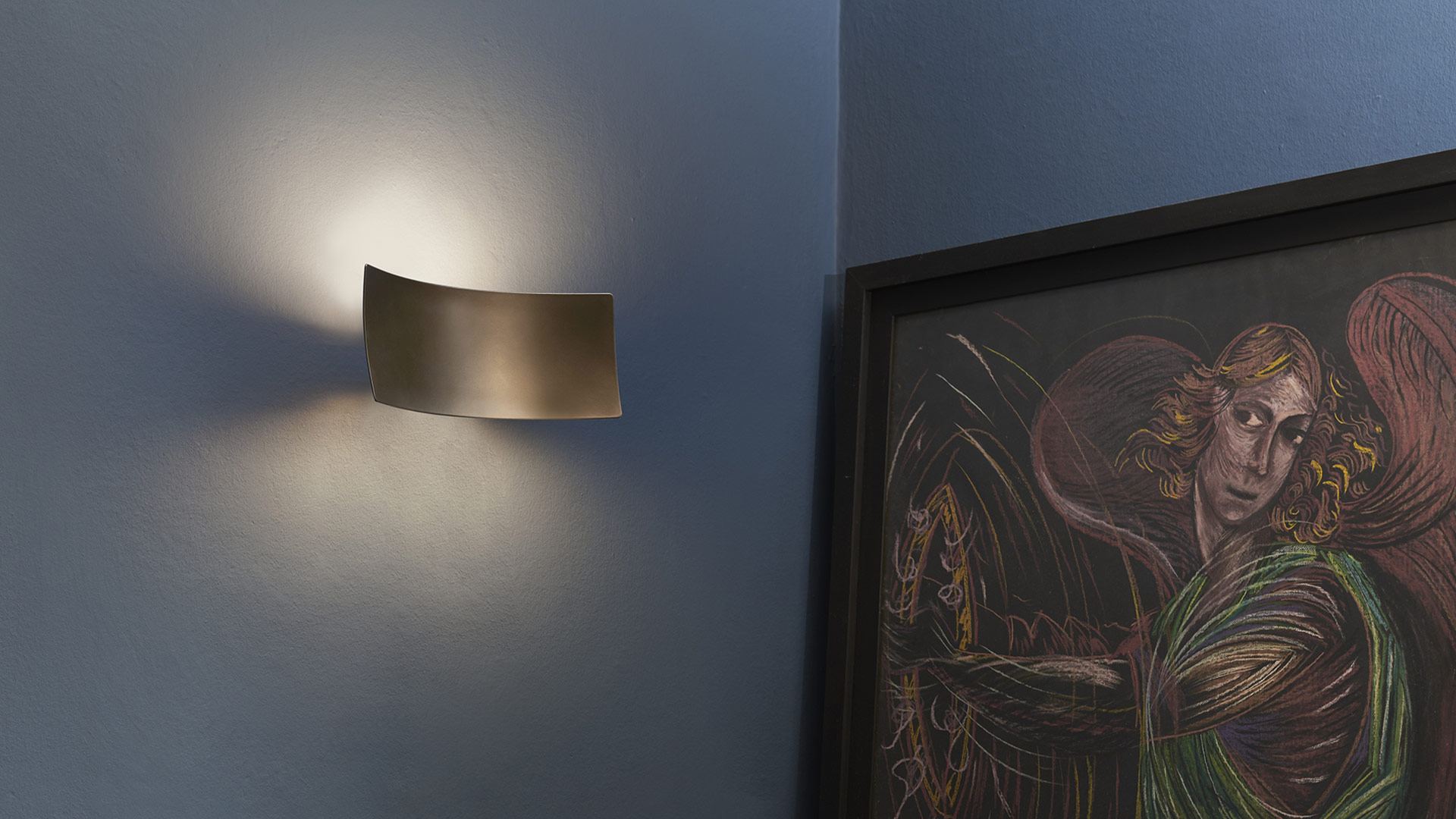 Lens by Francesco Rota was inspired by contemporary sculpture, playing with the curved surfaces to create an interesting interplay of light and mirrors. In fact, Lens is a direct light wall lamp with a concave screen that creates a barrier between the light source and the surrounding area.
