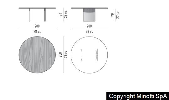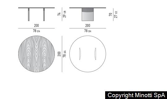 The top in flamed Tobacco oak and palisander Santos with matt polyester varnished finish is also available – woods that, with their material textures, give great character to the product.