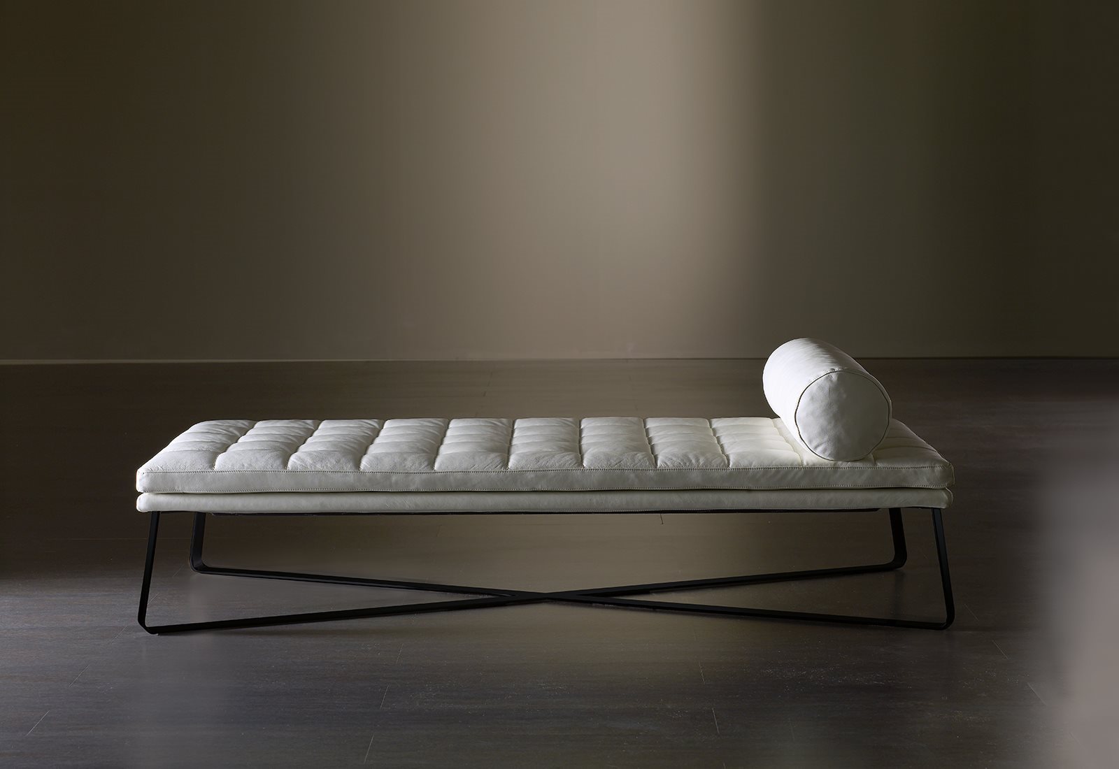 Ottomans and day bed with completely removable covers, fixed cover for leather version