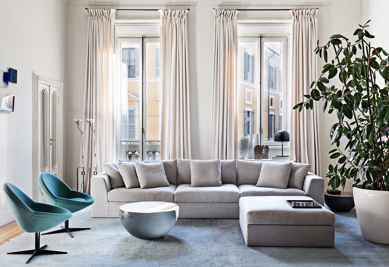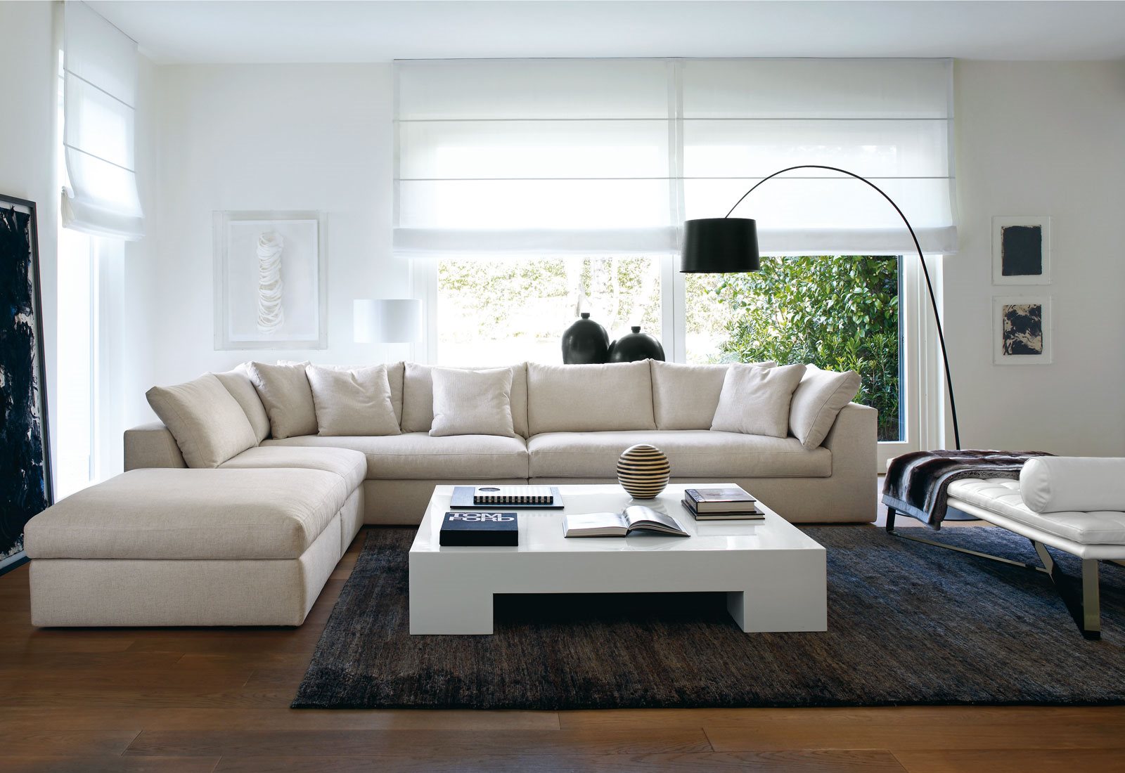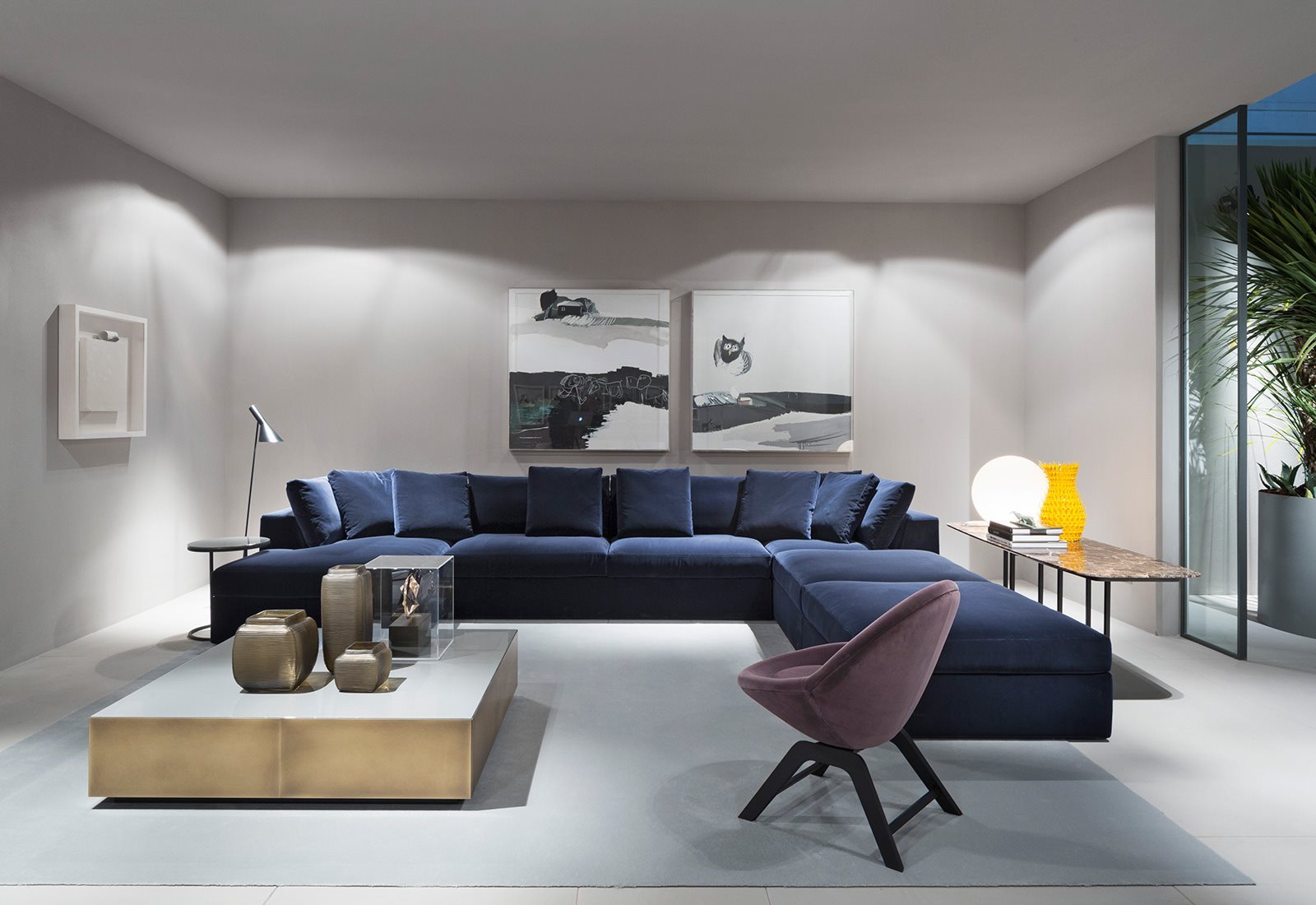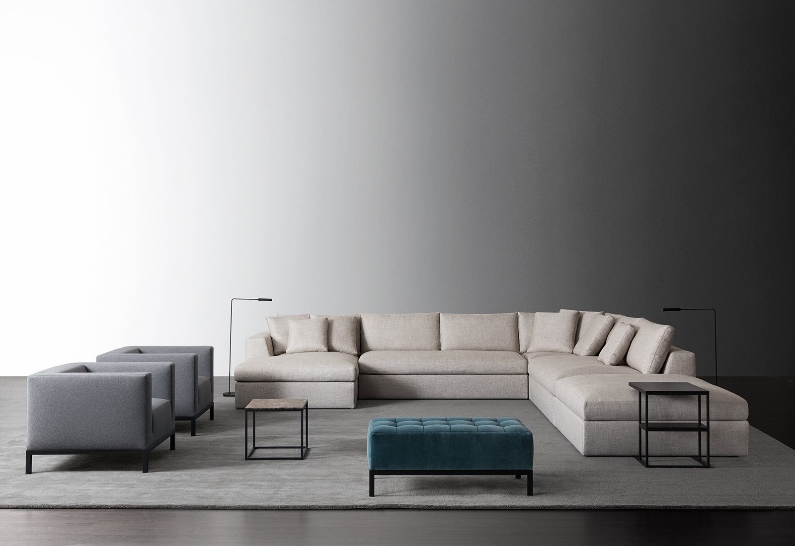 Thanks to the seat cushions, the total look of the different units results softer, more sinuous but sophisticated the same way. The collection includes linear sofas, modular units and a sofa bed.