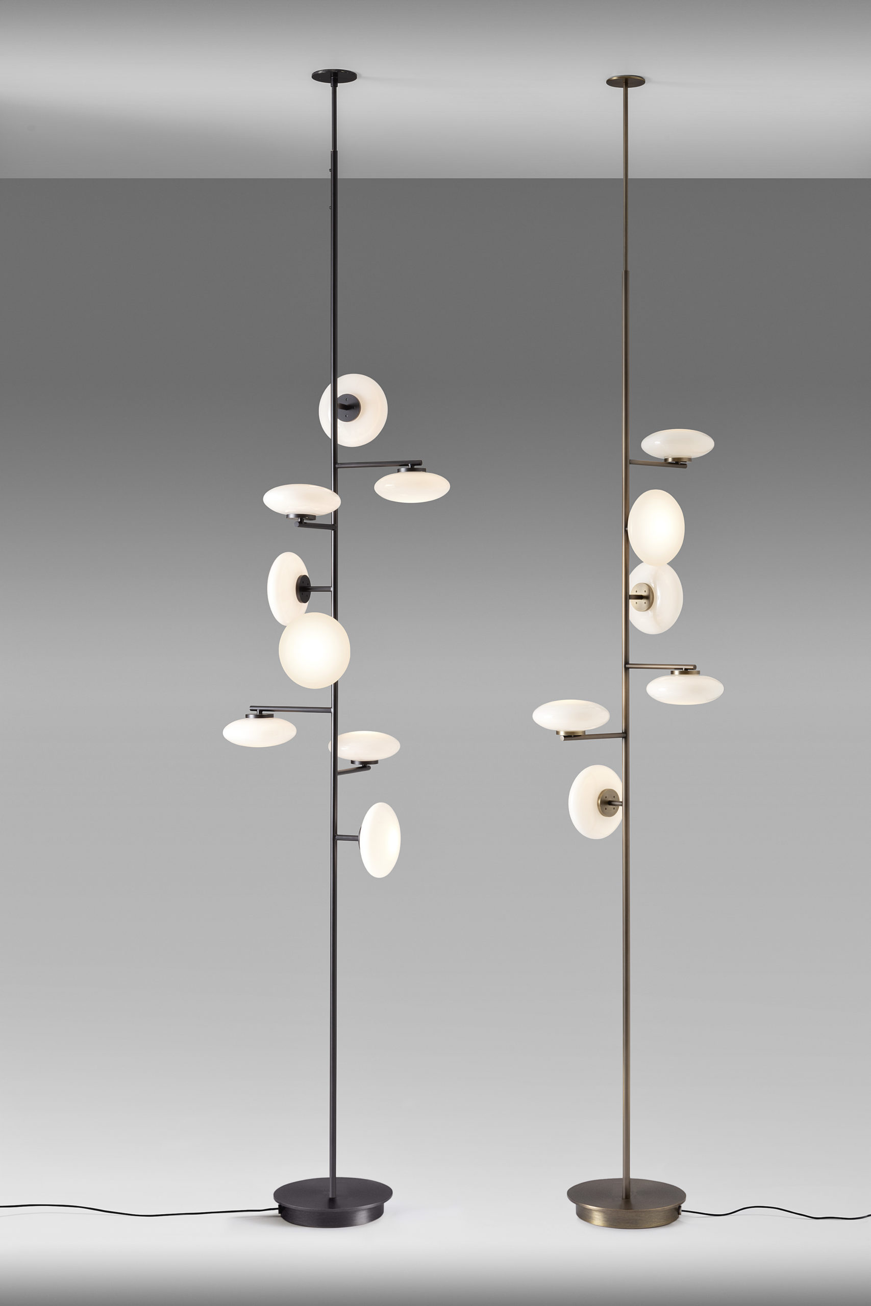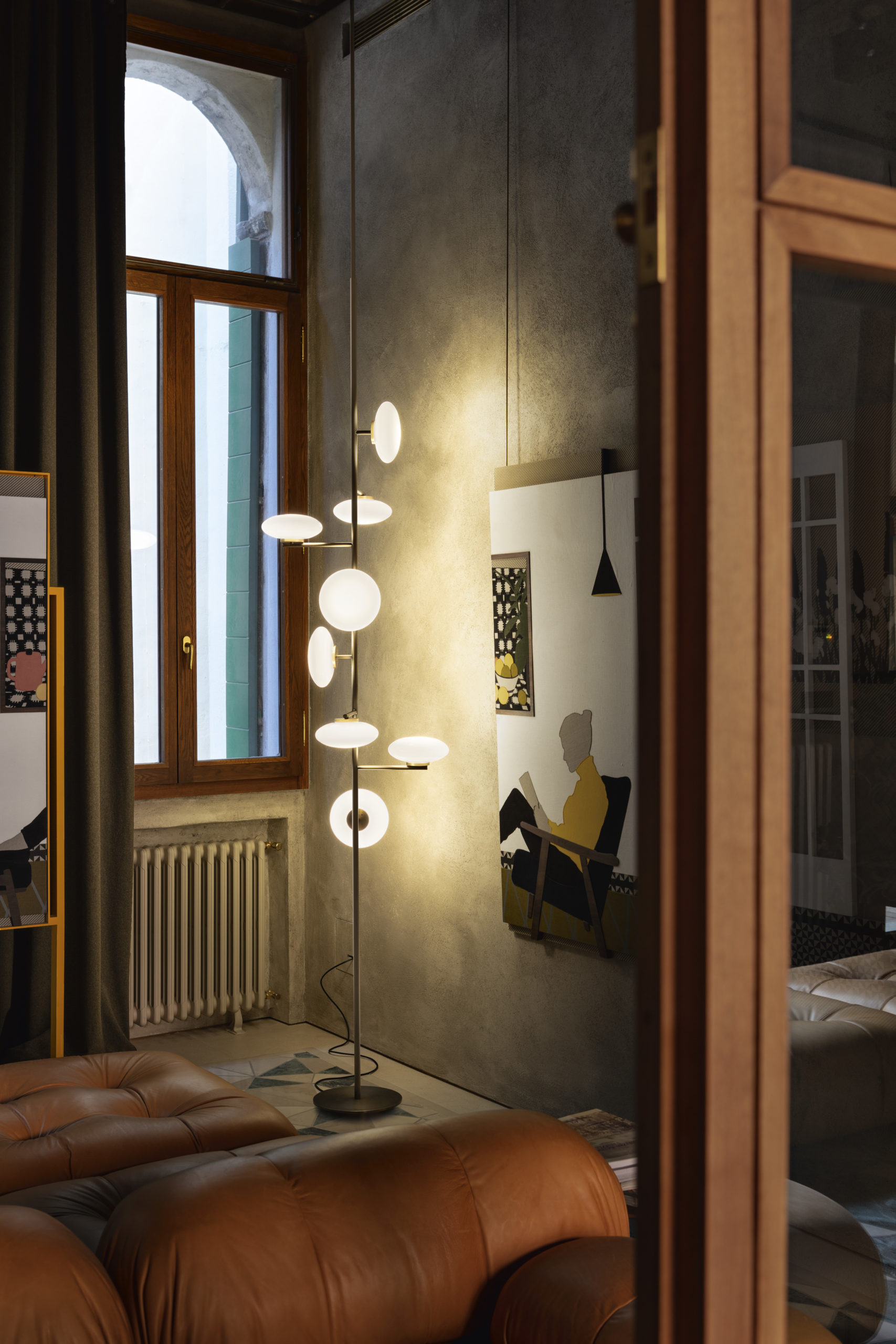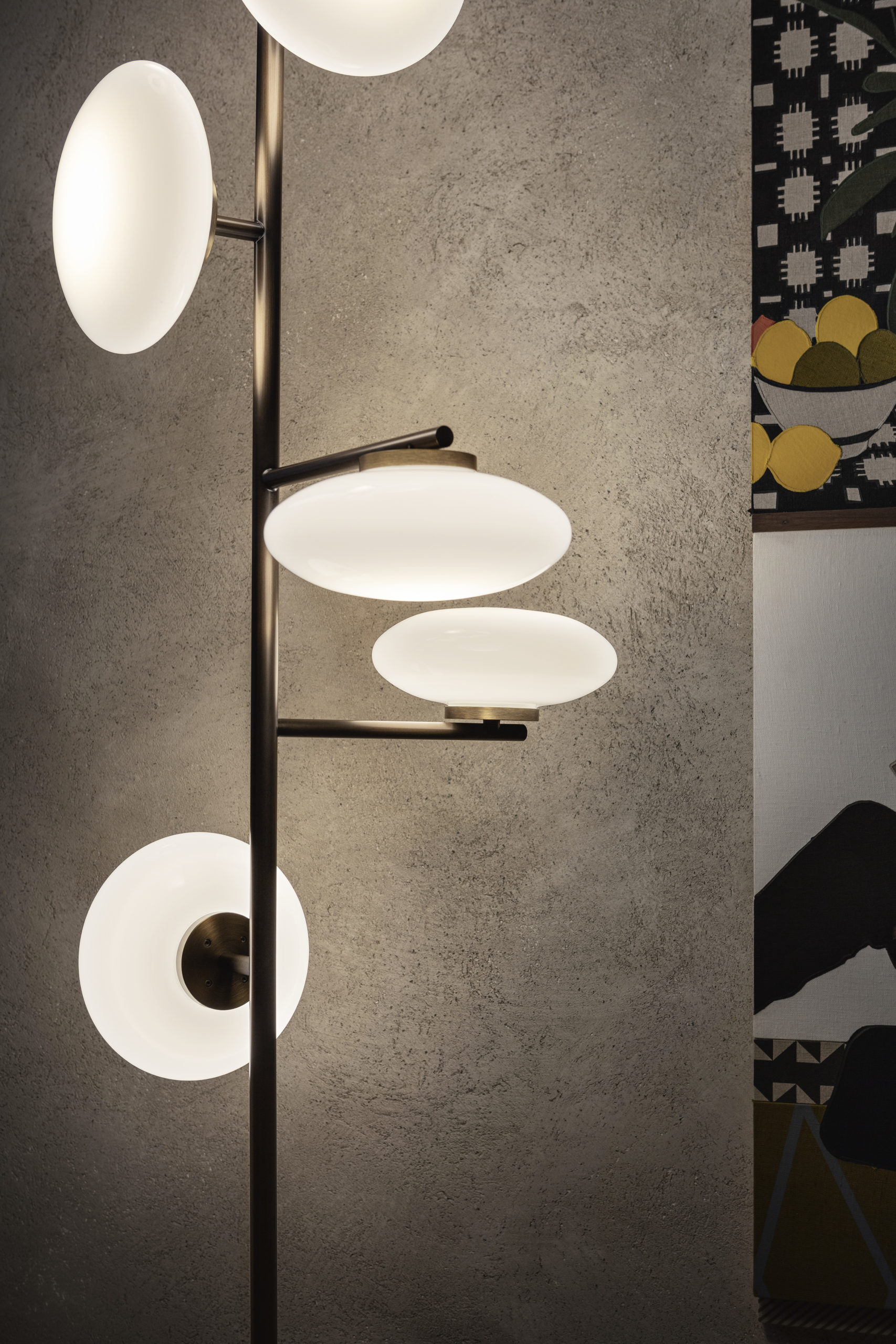 Halfway between design and art, Mamì is a versatile and elegant collection. The white oval blown-glass body is reinterpreted with a modernist look in the suspension compositions, while remaining linear in the floor and table variants.