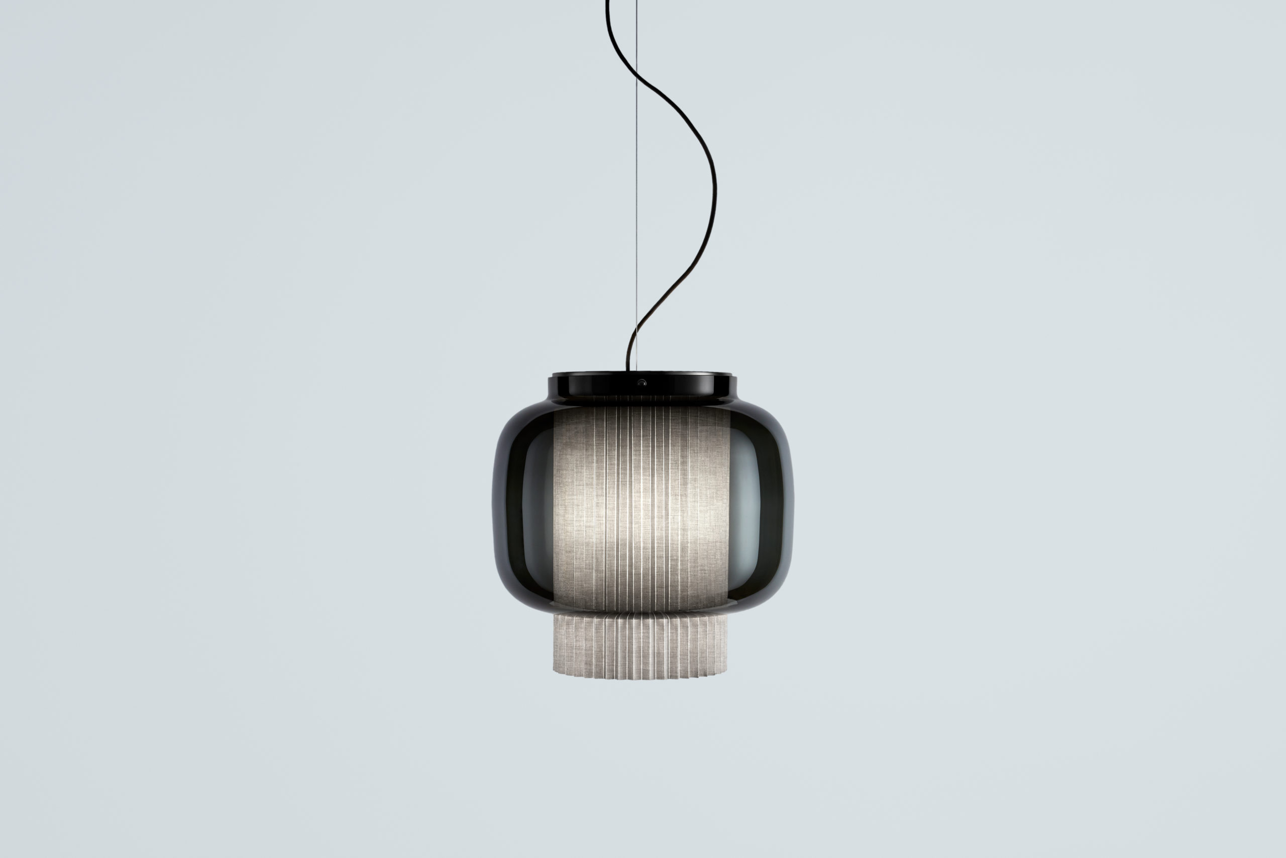 An incredibly elegant combination of artisanal blown glass and a plissé textile diffuser. Its name comes from Spanish “Mantón de Manila”. It’s a traditional silk shawl commonly used by flamenco dancers.