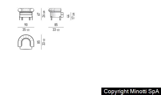 Conceived as precious details to streamline and lighten the design, the steel feet jetting out from underneath sport a Black-Nickel finish. The swivel base of the lounge armchair is available in the same finish.