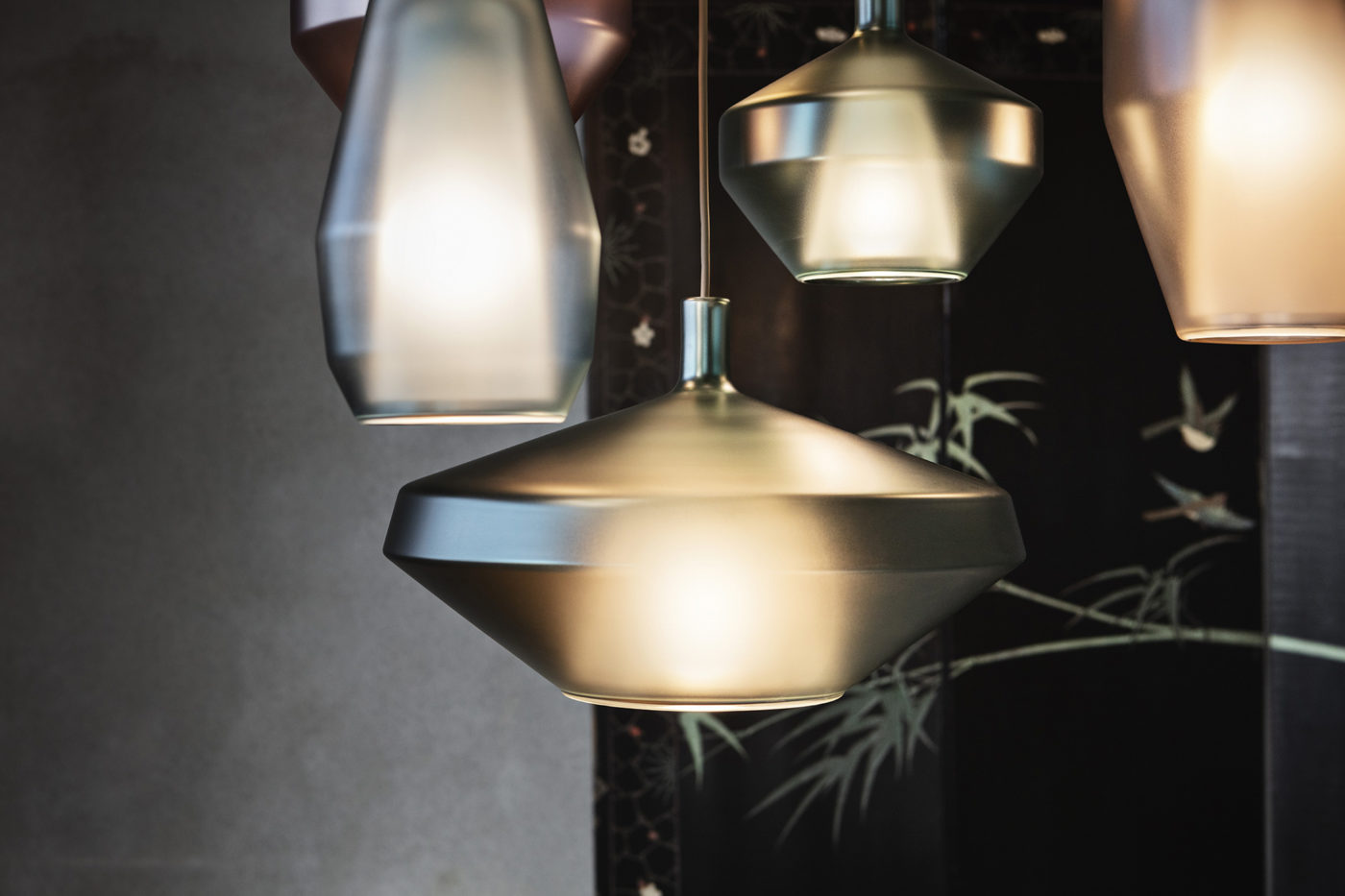 Mom lamps are inspired by the Venetian tradition, and refer, in the shape and opaque finishings, to the classical Murano glass vases. Also available in table and wall variants, in the glossy variants they look like precious stones.