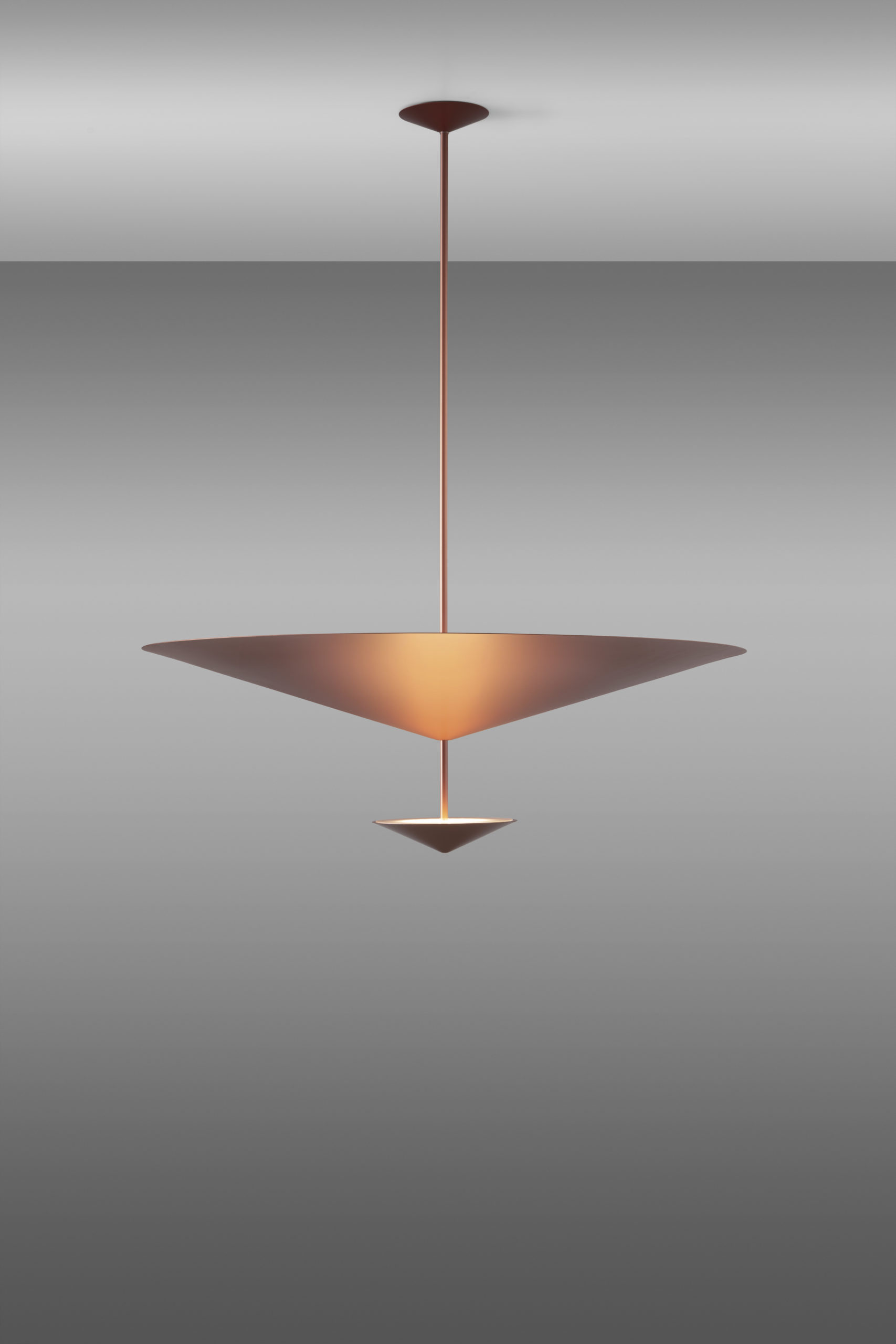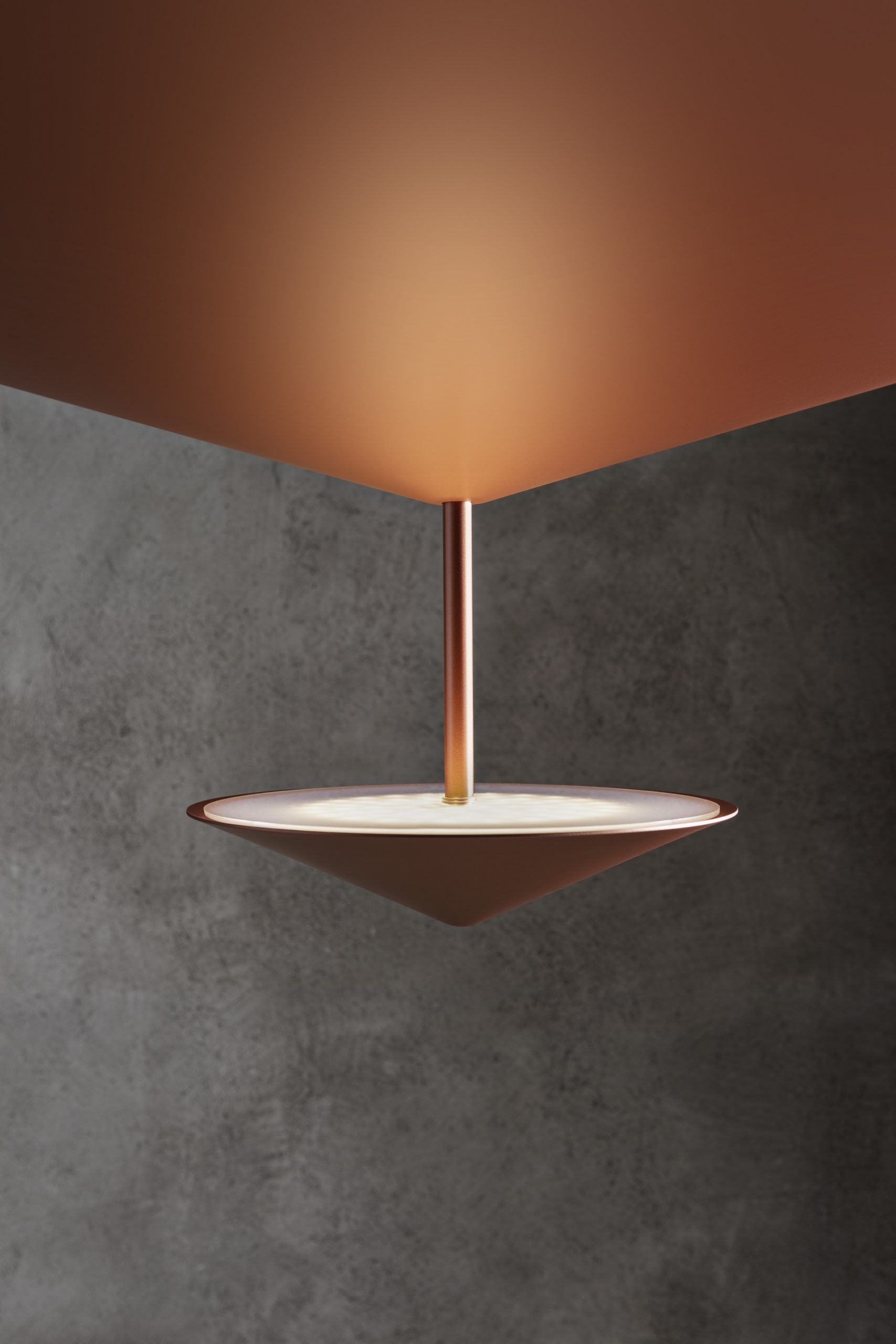 As in the classic myth Narciso looks at his image reflected in the water, likewise the cone of this lamp splits up to spread and reflect the delicate light of the lighting body.