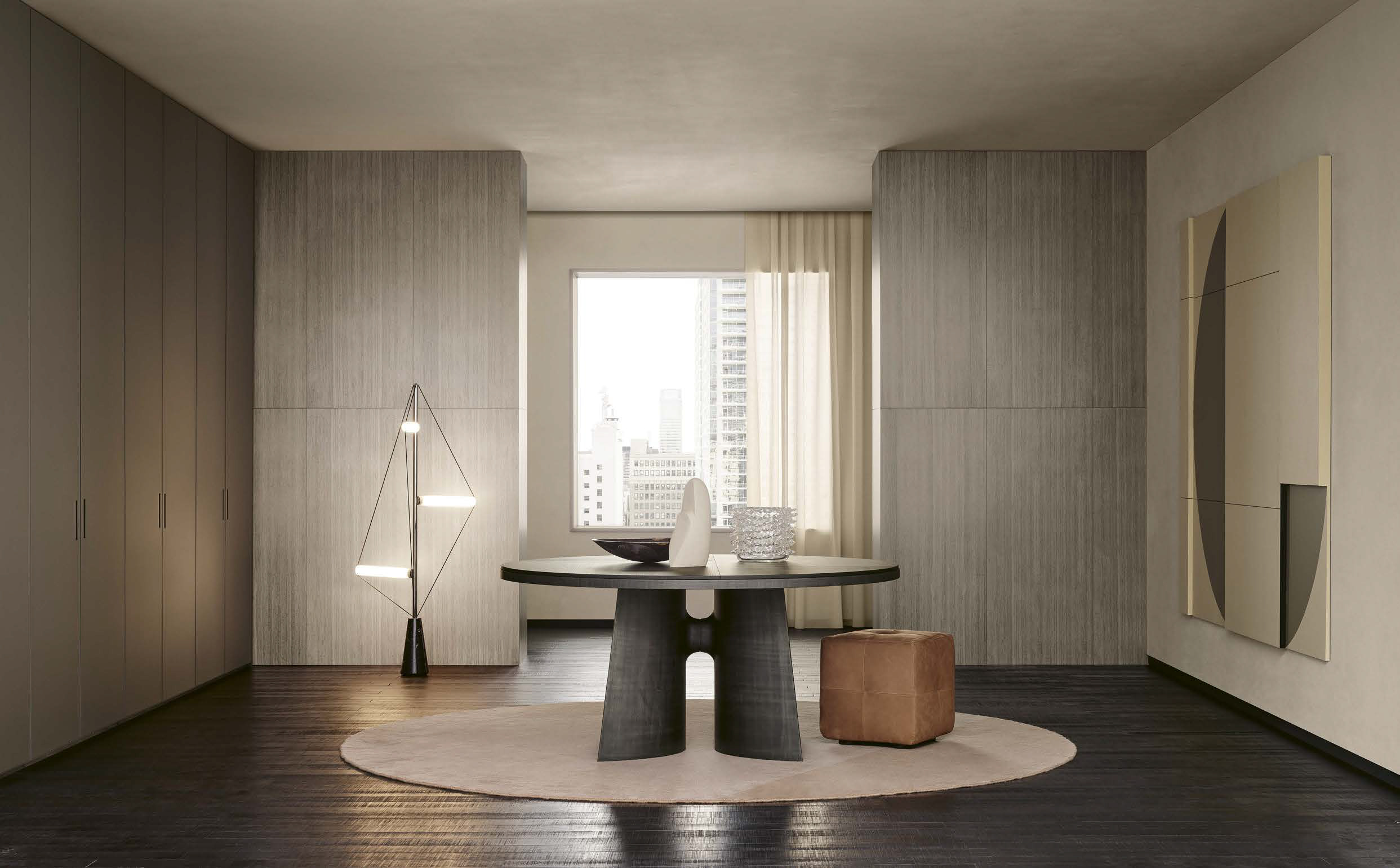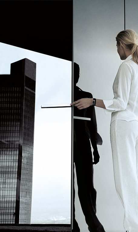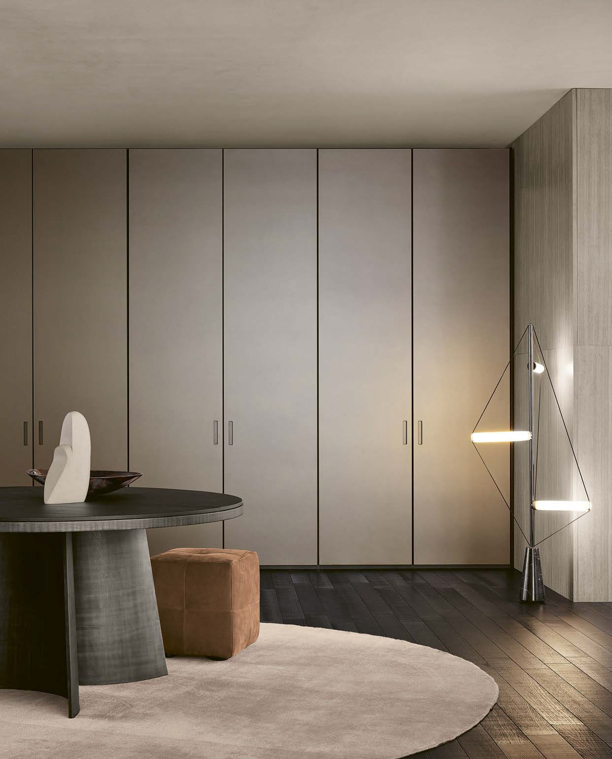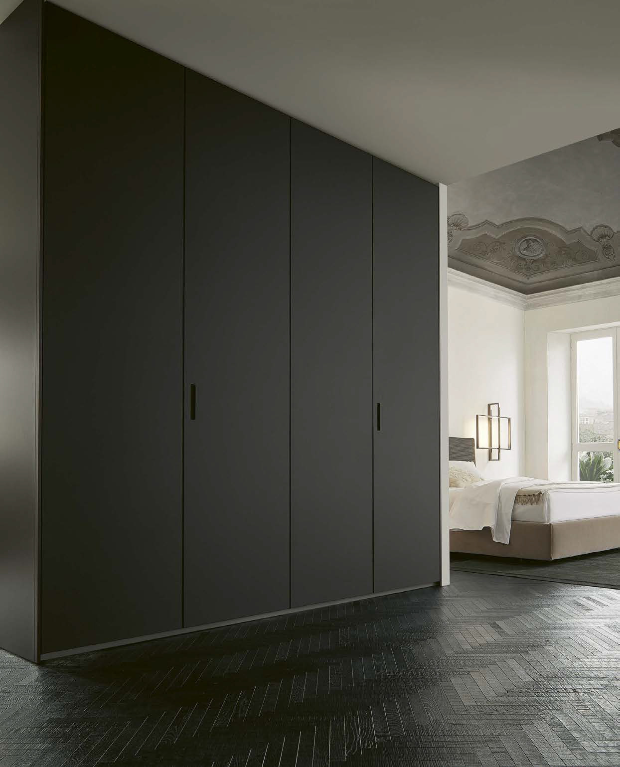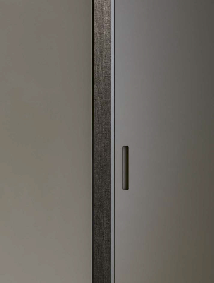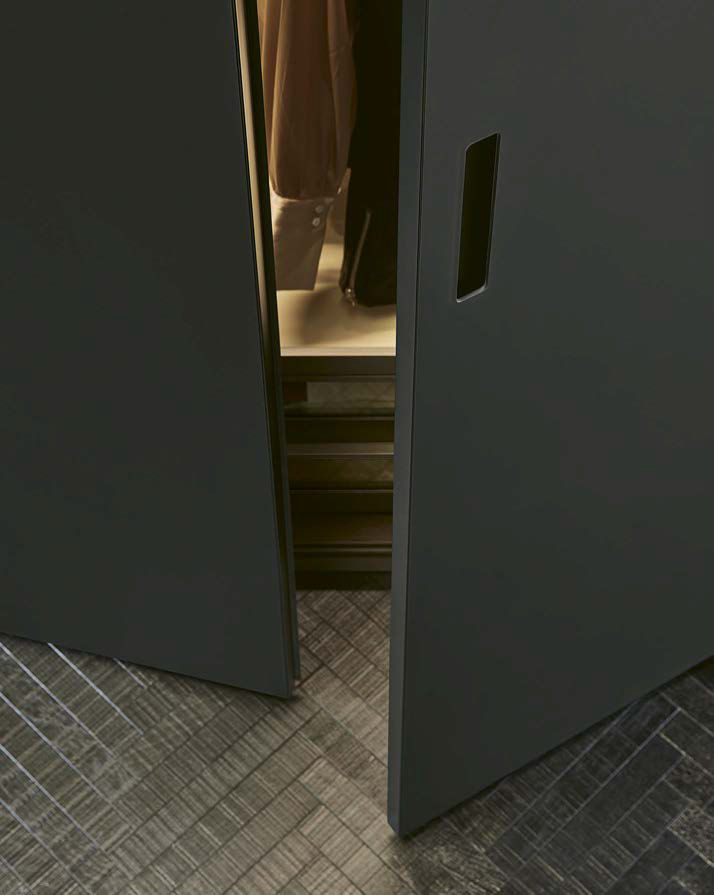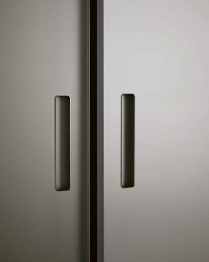 Ocean design R&D Poliform: the luminosity of shiny glass for a wardrobe that gives the idea of pure space. A project that exploits light, thanks to the breadth of surfaces.