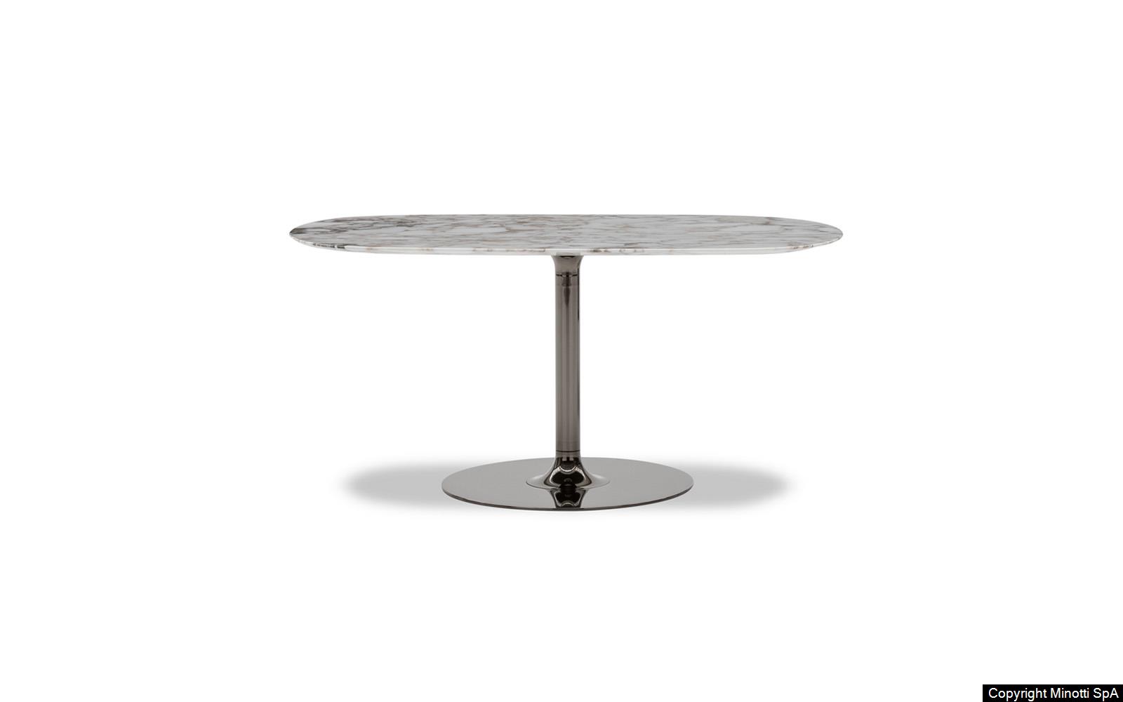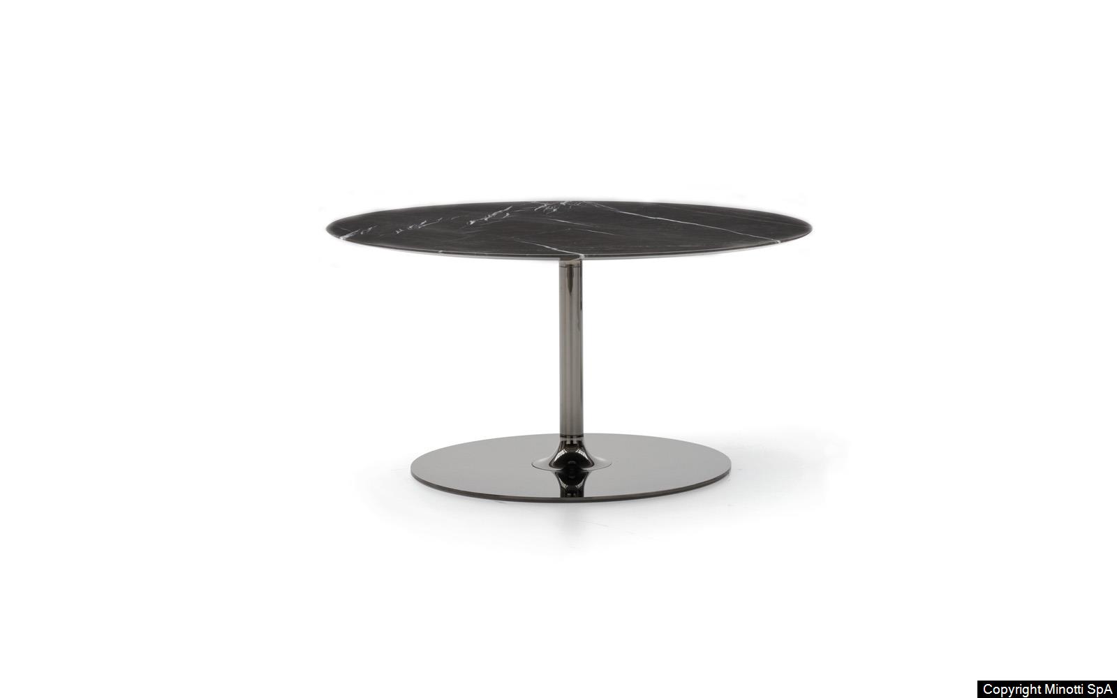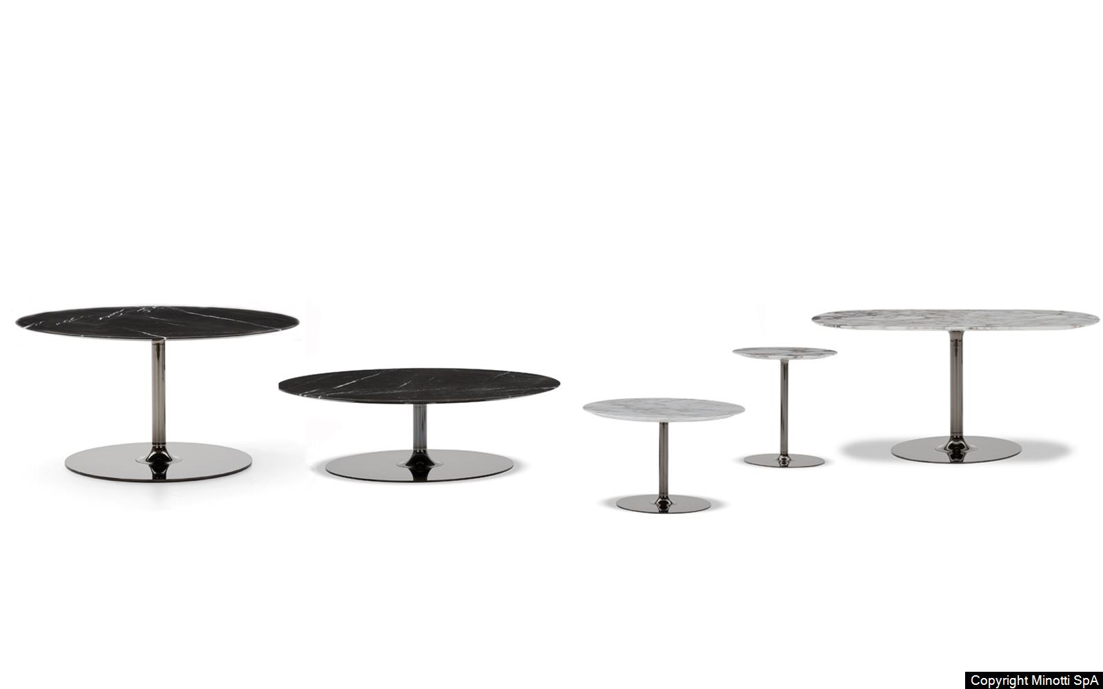 The inspiring principle of the Black-Nickel or varnished Pewter colour structure of the Oliver family of tables is the fascinating visual effect of a metal stem that melts into a diffused flow.
