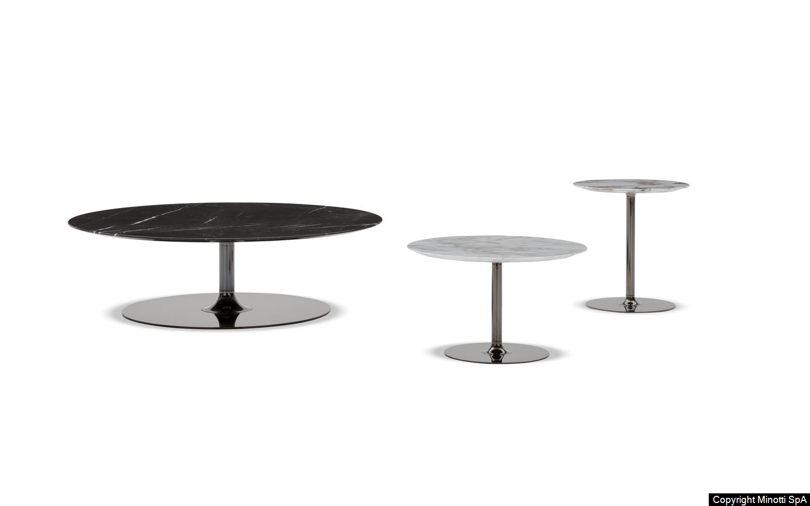 Conceived both in the lounge and side table versions, it features a precious top in Calacatta or Stone Grey marble.