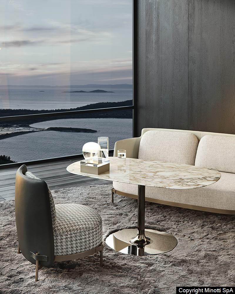 A piece of furniture that fully interprets the essence of classic contemporaneity characteristic of the Minotti code.
