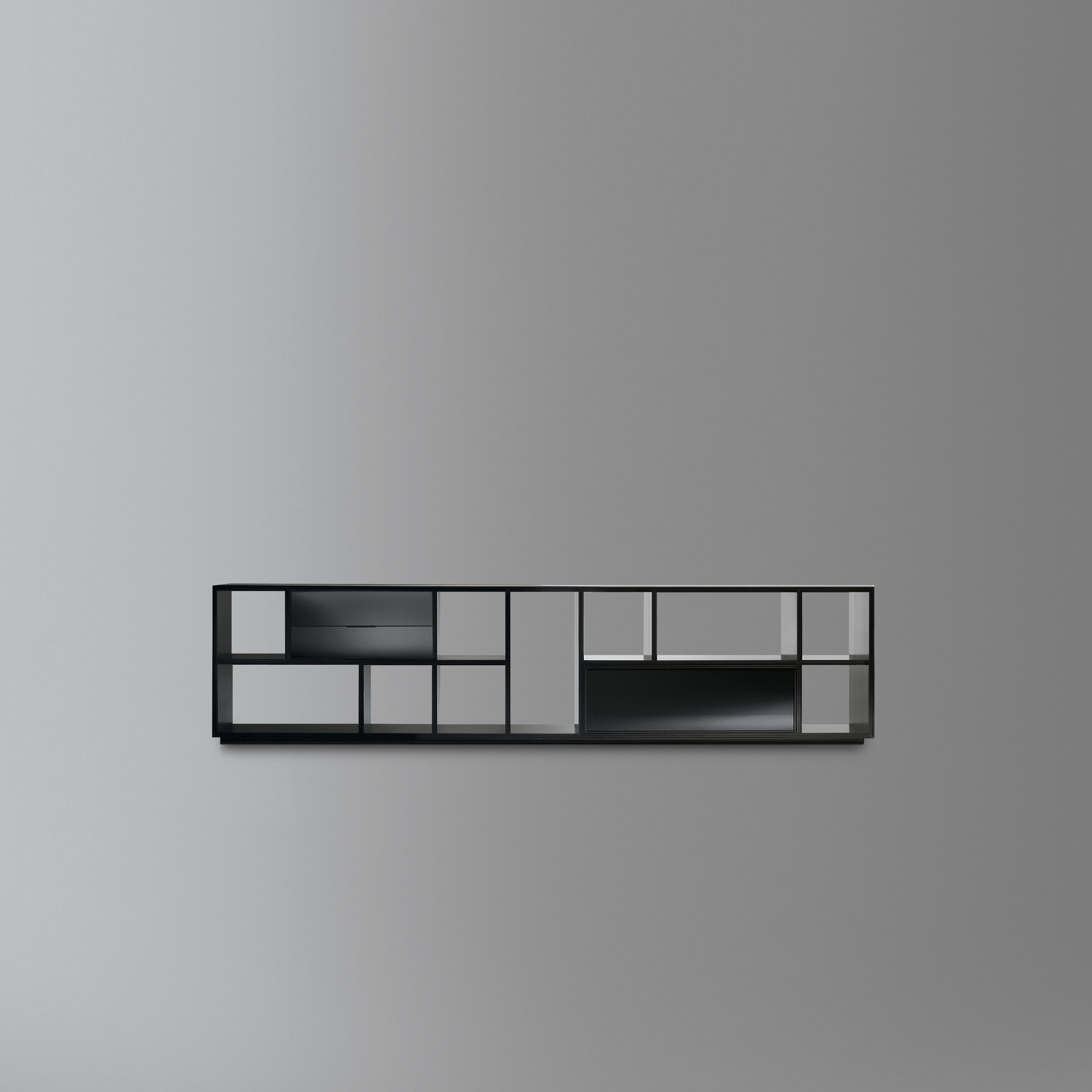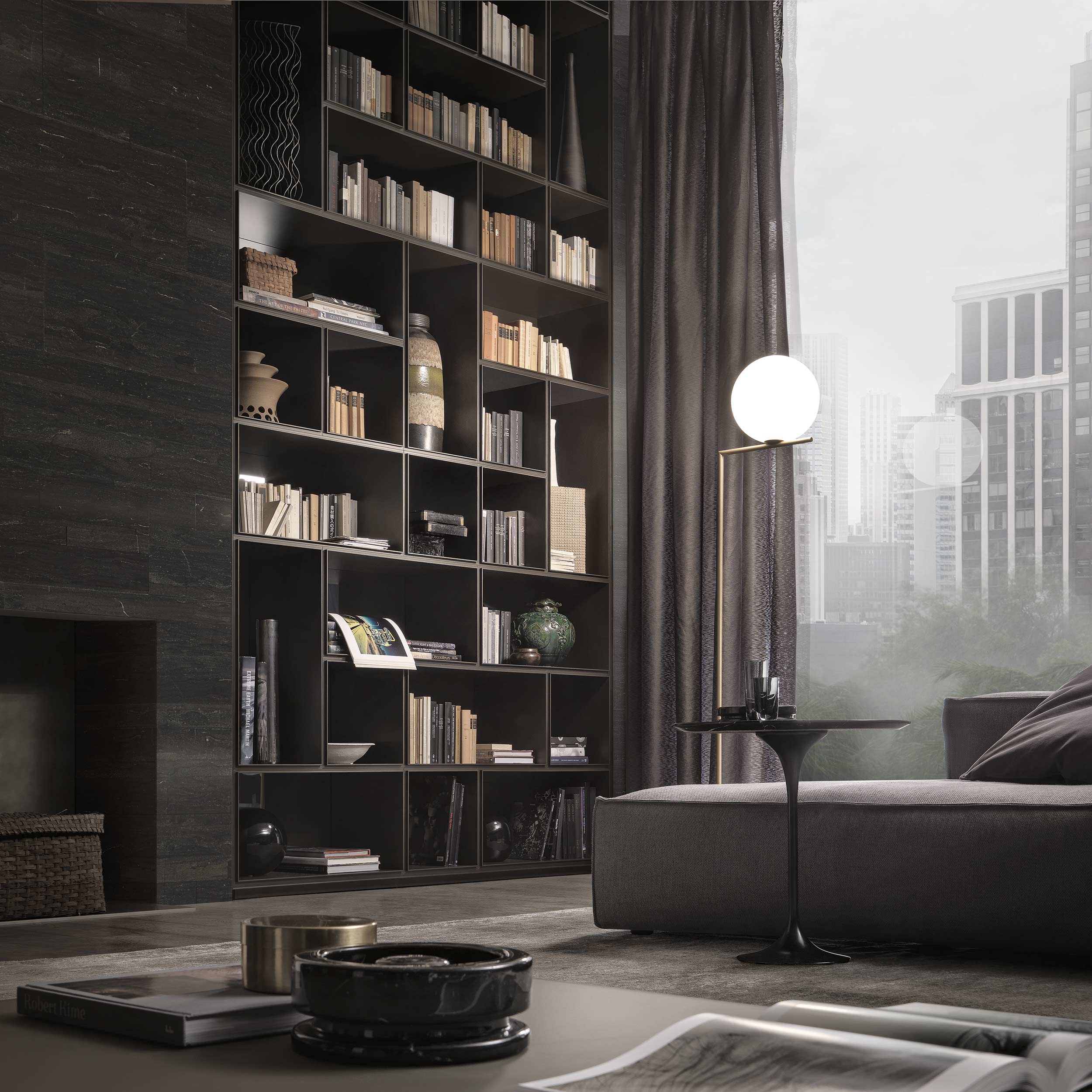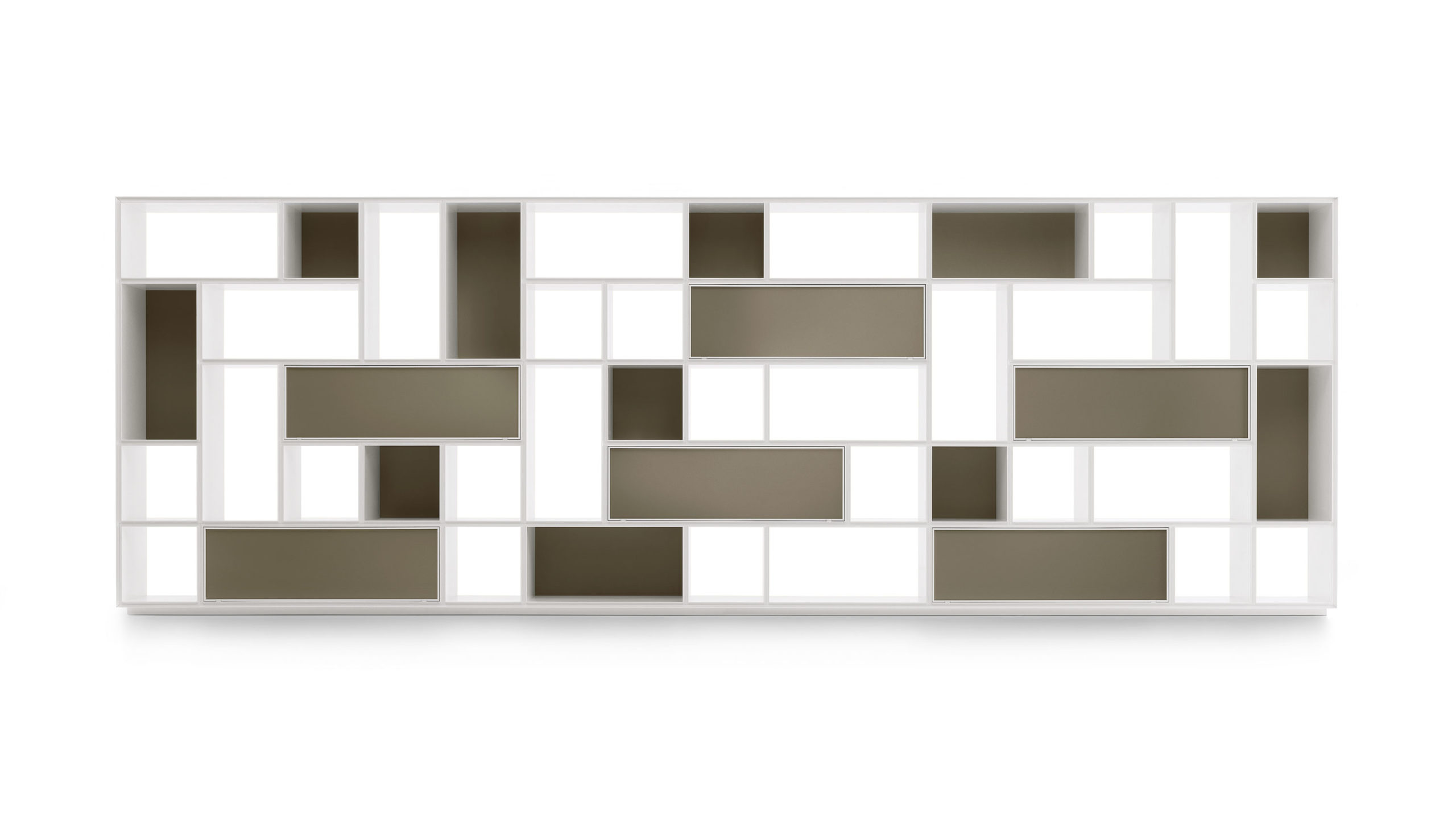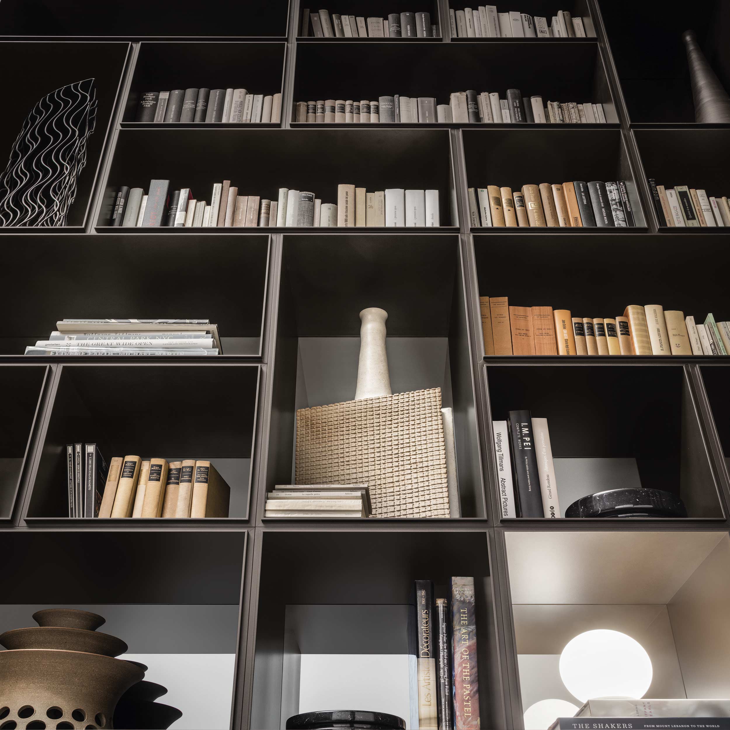 A rigorous geometric idea which allows to create bookcases of different dimensions with a strong scenographic value. Perfectly double-sided, equipped with drawers or flap doors units, Opus decorates with personality house or professional spaces.