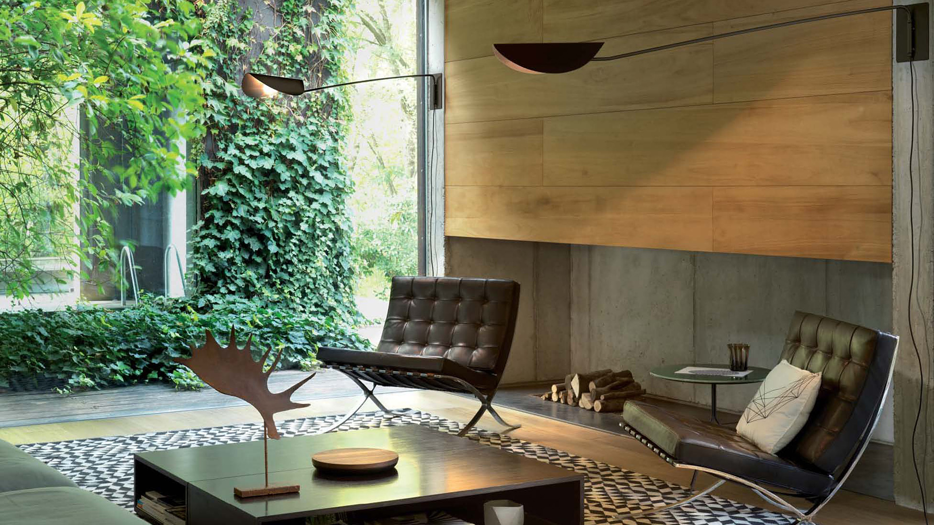 Plume, designed by Christophe Pillet, a family of lamps consisting of a table lamp and two wall lamp versions, one with a long arm and the other with a short arm. The lighting project conceptually originated from a collection created by the French designer for the Sezz Hotel in Saint-Tropez, designed especially for the hotel through the Oluce Bespoke Tailoring service, re-evoking a more ornamental version of Plume.