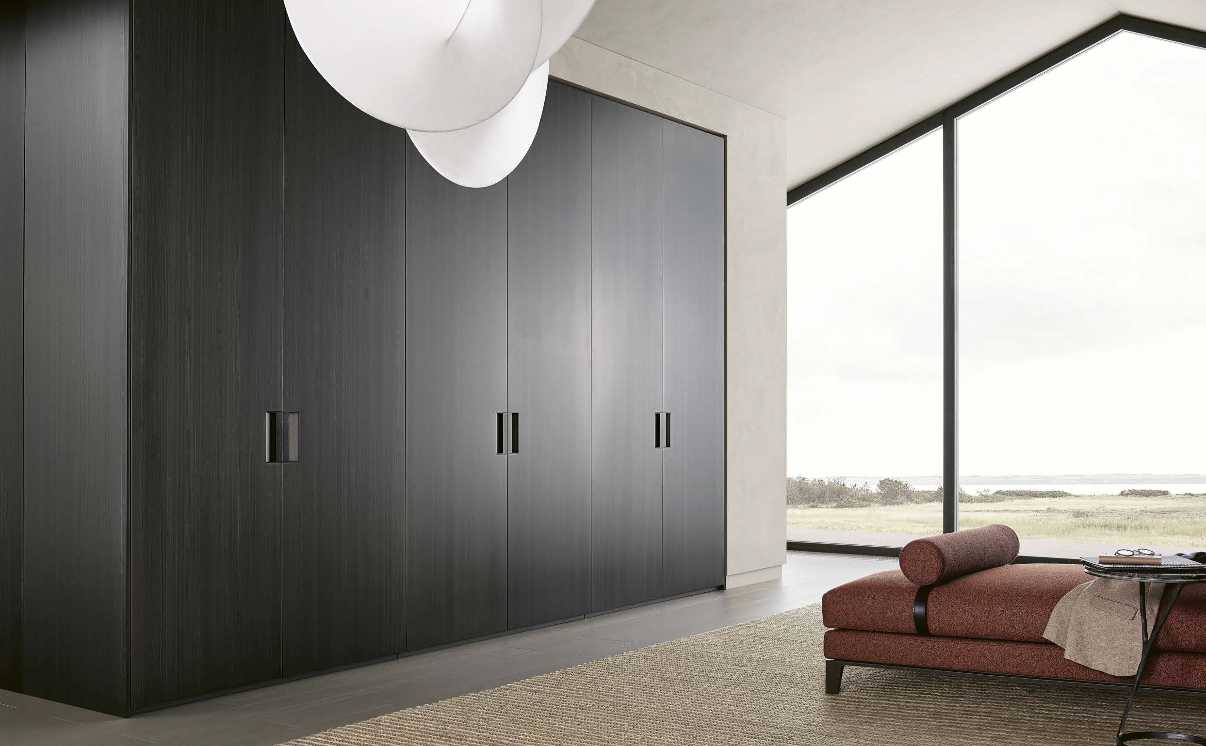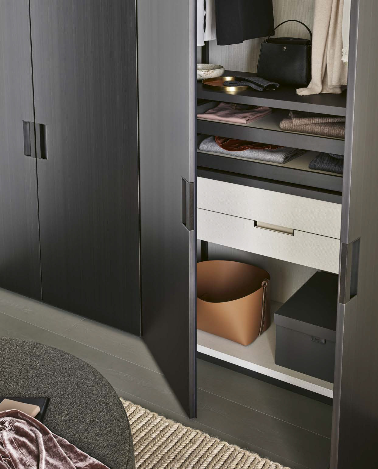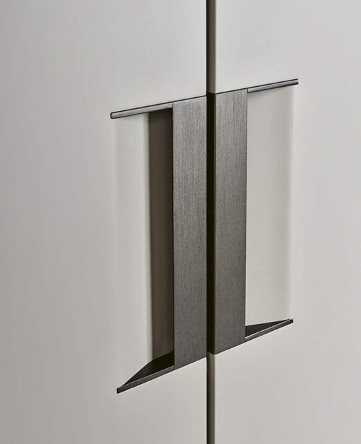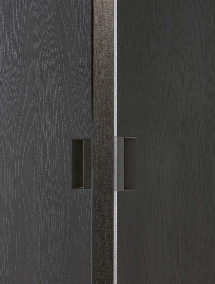 Poliform designs a door that has its strength in versatility. A wide range of finishes allows to define its character, more classic or more contemporary, choosing from all the lacquered colors – also metallic – and the essences. In the hinged or sliding version, Plus is recognized by the shape with integrated handle.