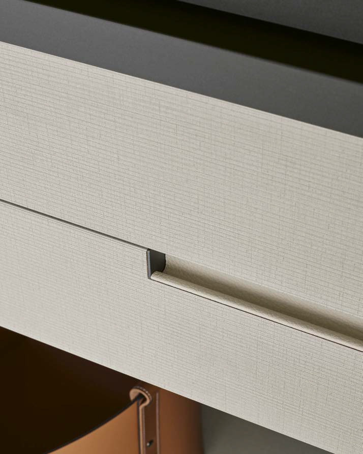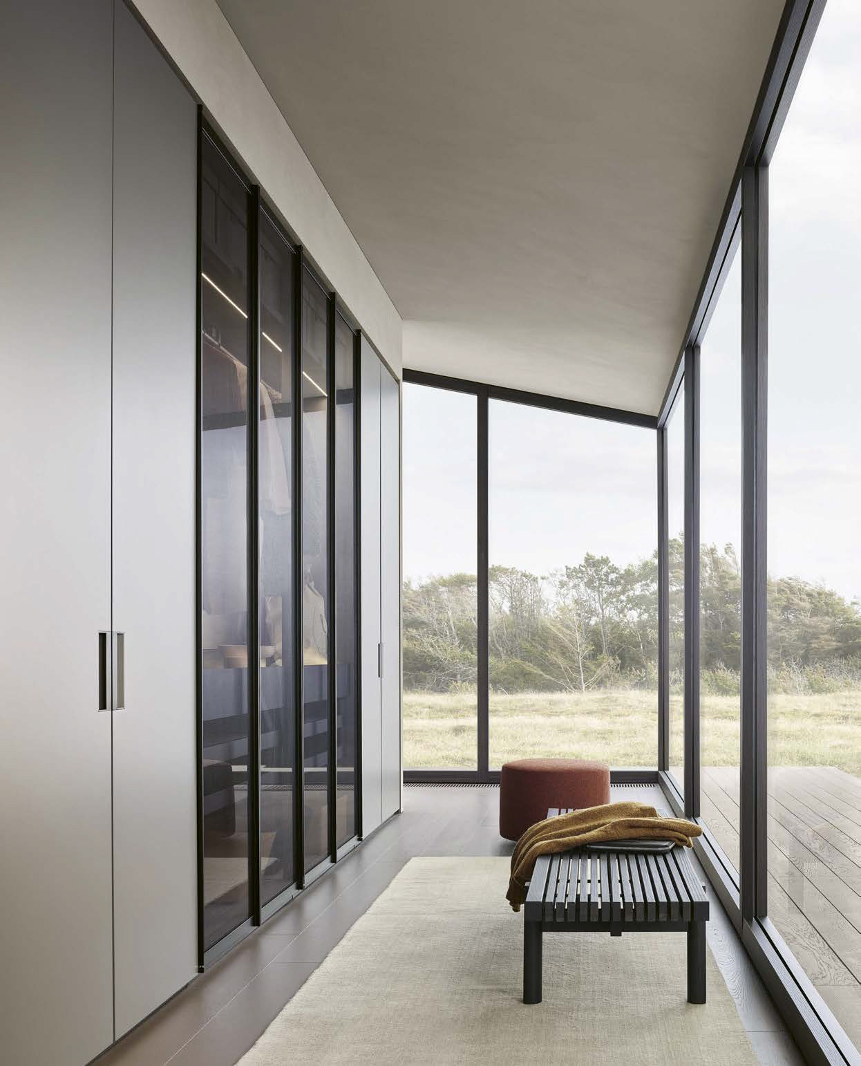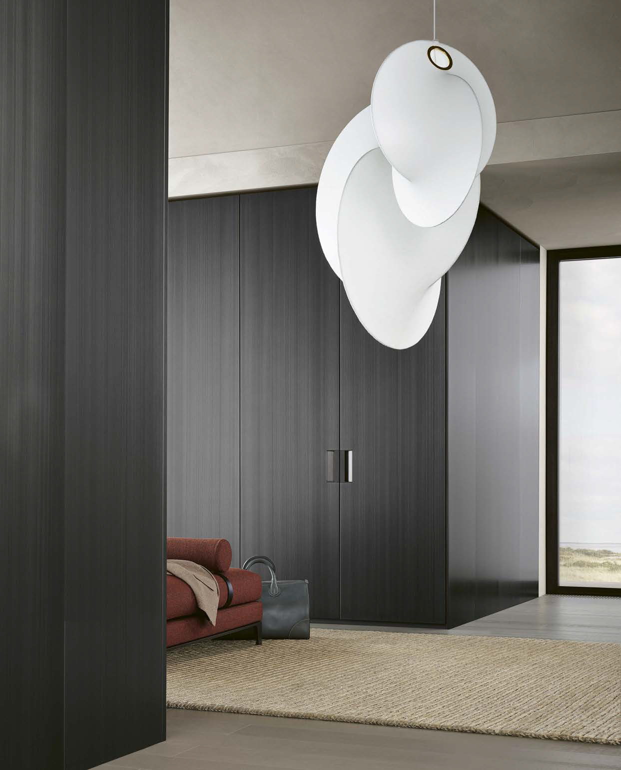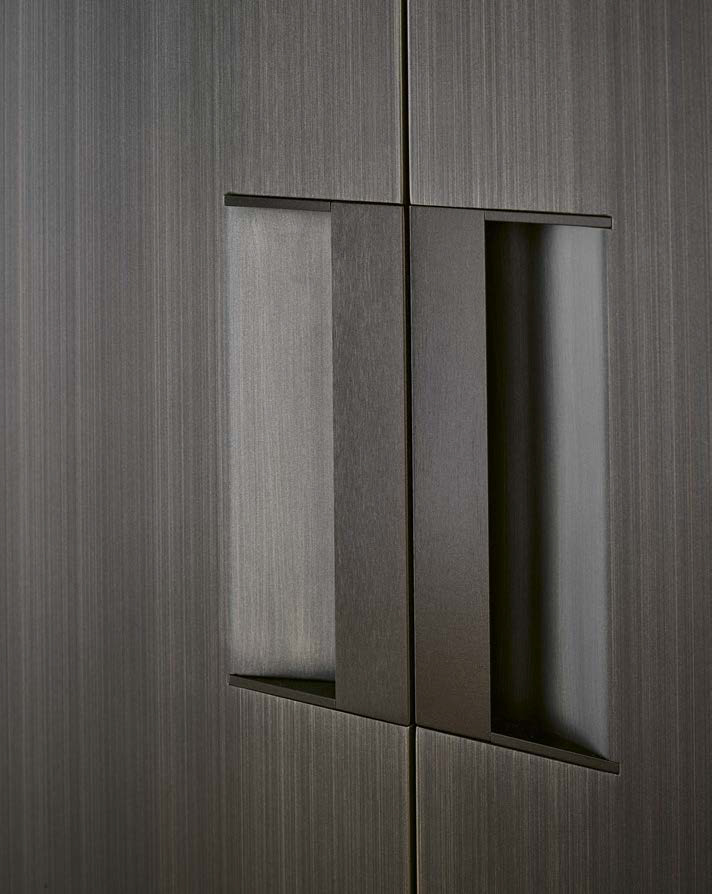 Poliform designs a door that has its strength in versatility. A wide range of finishes allows to define its character, more classic or more contemporary, choosing from all the lacquered colors – also metallic – and the essences. In the hinged or sliding version, Plus is recognized by the shape with integrated handle.