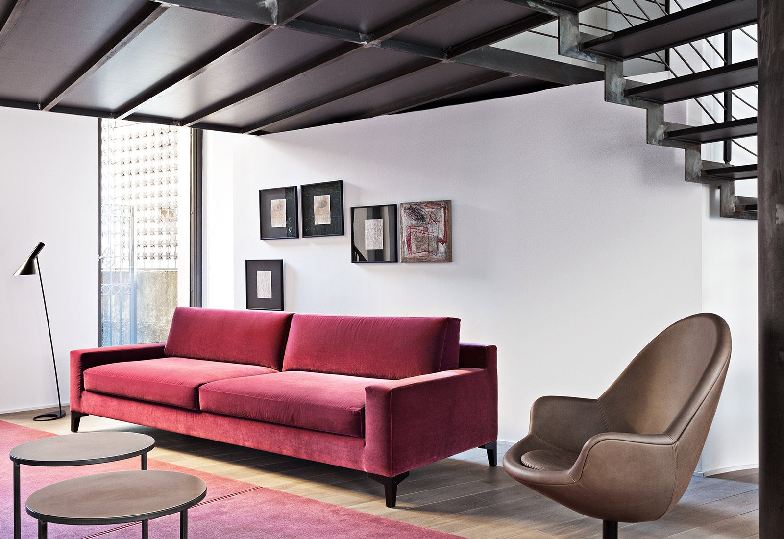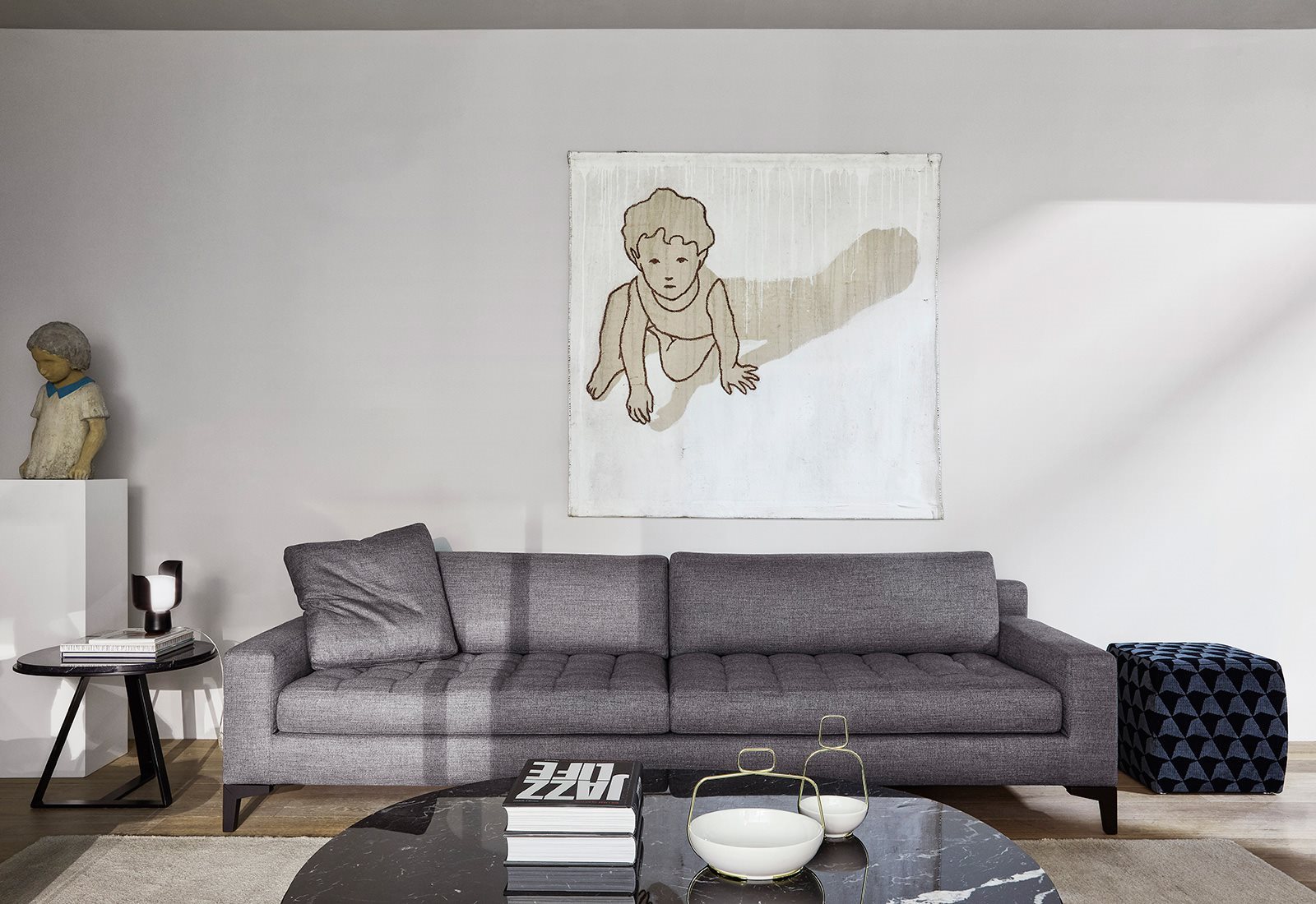 Plays of balances between volumes and proportions and a wide variety of sizes and modular units give life to any configuration you may wish. The total look of the collection conveys an elegant lightness, highlighted by the feet at sight which lift it up from the floor and by the cushions which are available with plain of quilted finish.