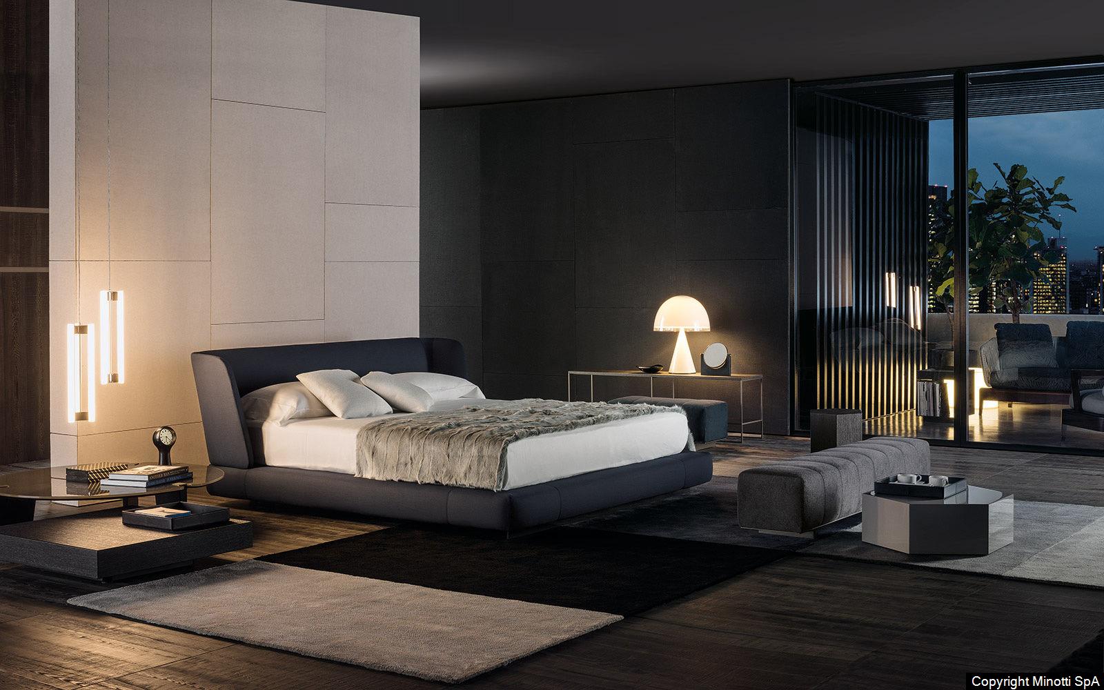 The enveloping headboard is enhanced with constructive details that reveal an aesthetic language lush with fine-tailoring content and that imbues classic shapes with a contemporary edge. The bed is composed of a 17 cm. H. base with pocket springs that, along with the “Comfort H. 25” mattress, promote superior quality of sleep. The finely-crafted tailoring is apparent in the 45° joints of the footboard, and in the stitching that embellishes the headboard and footboard of the bed.