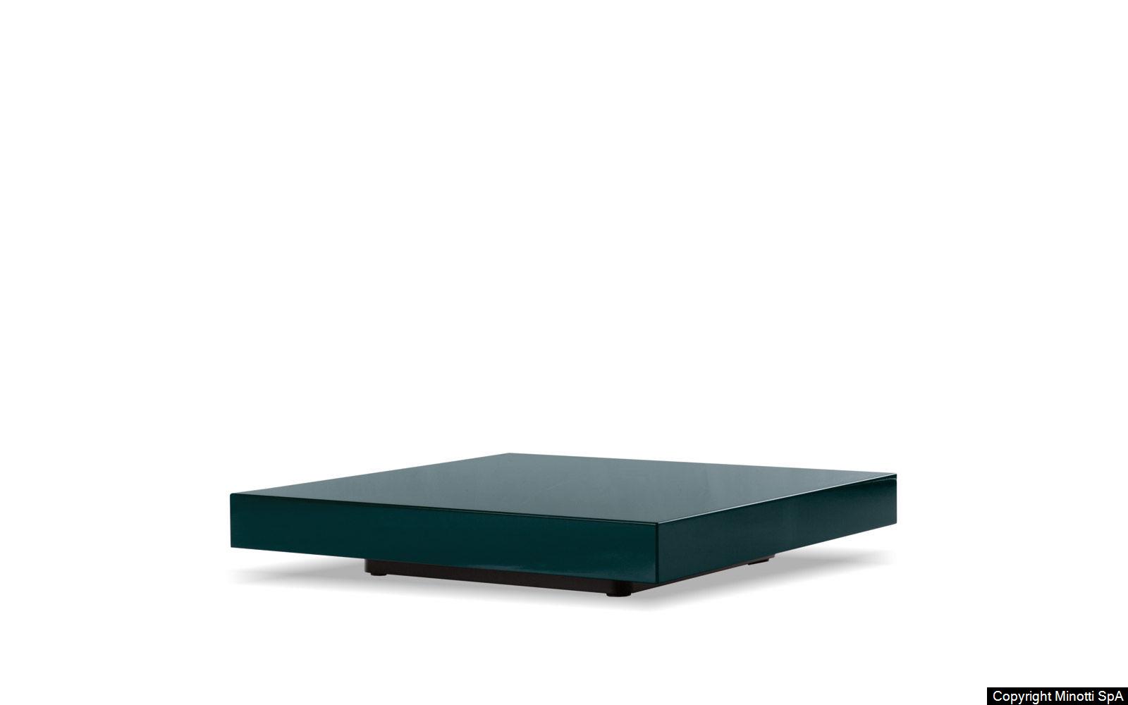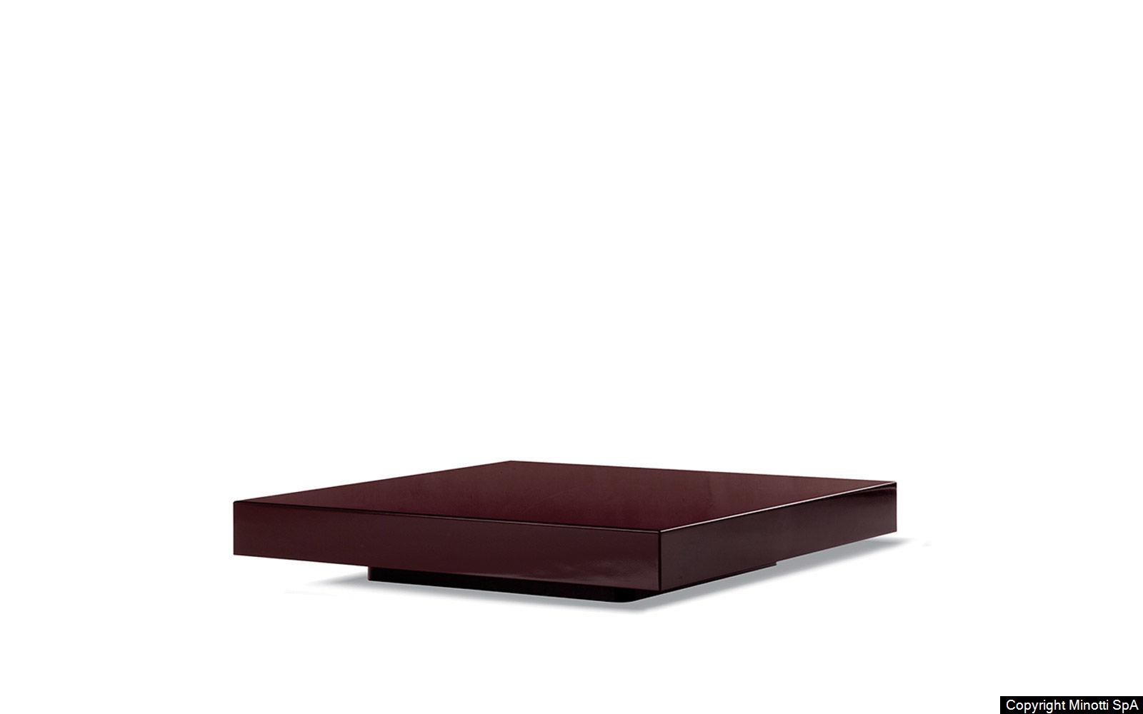 Ritter appears to float above the floor on a black painted wood base. The Ritter coffee table is available in two sizes: 86×86 cm and 110×110 cm and, in addition to the Moka-coloured lacquered wenge version, also comes with a glossy lacquer finish in sophisticated shades like Corten, Petroleum and Mud.