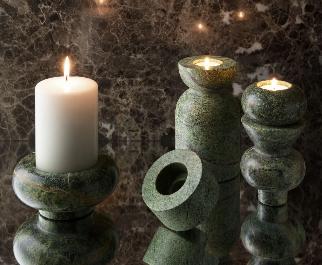 A playful set of two stackable and reconfigurable candle holders that create domestic sculptural interventions.