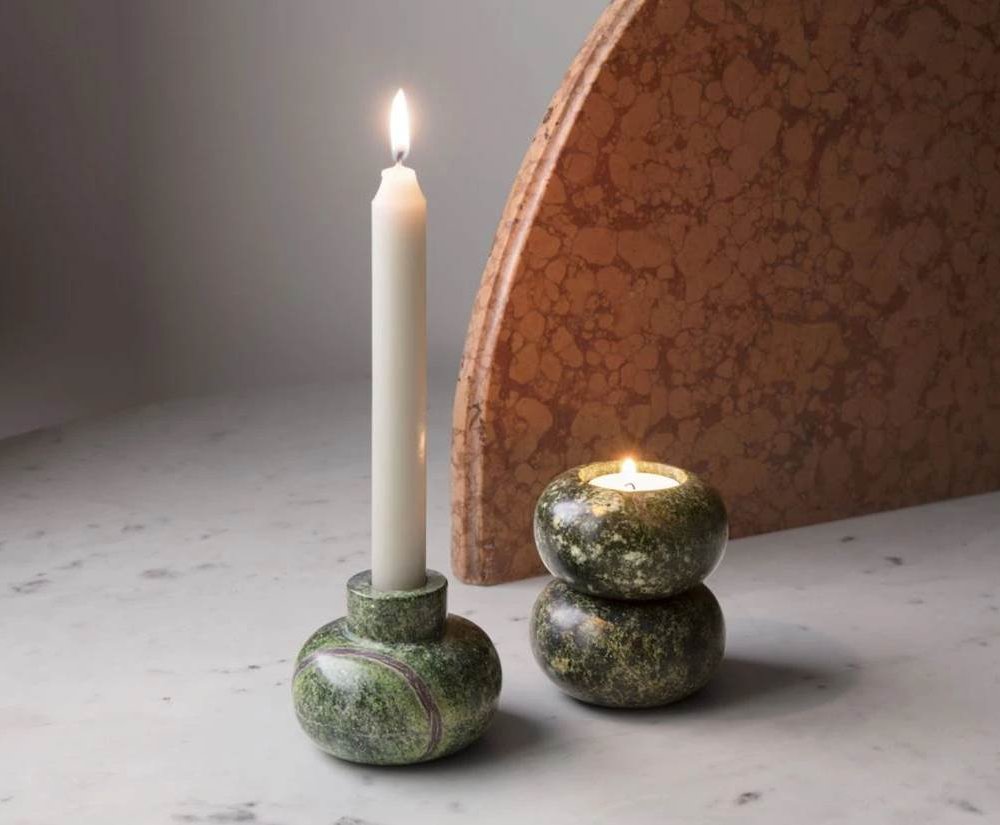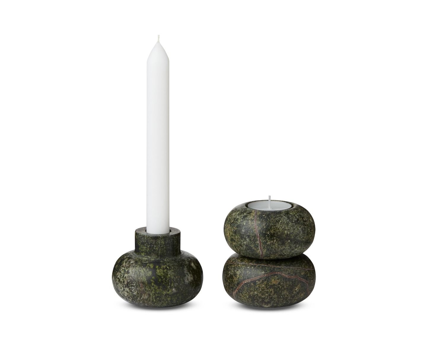 A playful set of three stackable and reconfigurable candle holders that create domestic sculptural interventions.