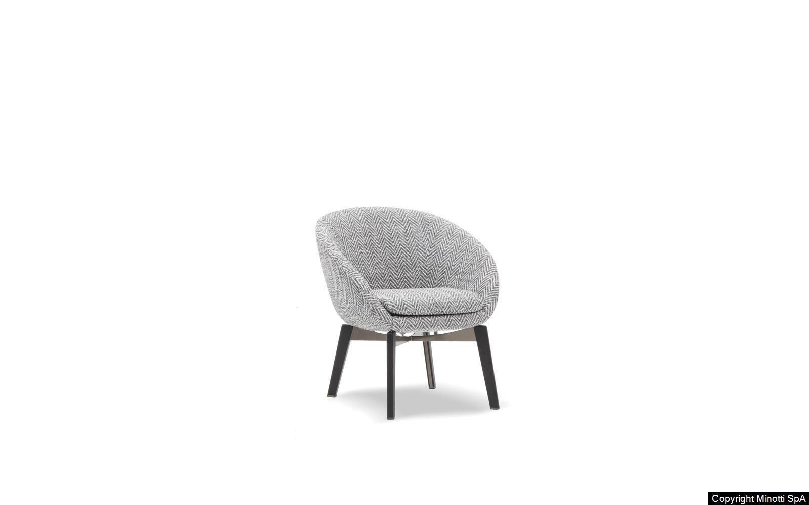 The fixed cross structure in Bronze-coloured metal with the feet sheathed in Moka-shaded oak is a surprising detail that reflects the virtuosity of Minotti in combining different materials. Worked with the company’s unique savoir-faire, they highlight its craftsmanship tradition.