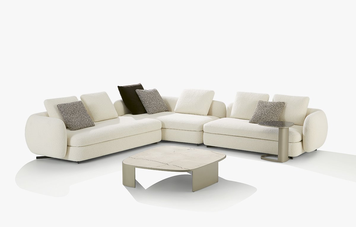 Saint-Germain is a system of sofas and upholstery elementswith sinuous and sensual shapes. An enveloping and roundstyle recurs in all the modules of the series, which featureslinear sofas, L-shaped configurations, or organic compositions.The covering, in fabric or leather, enhances the volumes,full and voluptuous. Designed by Jean-Marie Massaud,Saint-Germain transforms any space into a warm and familiarlandscape, giving a pleasant sensation of domestic comfort.