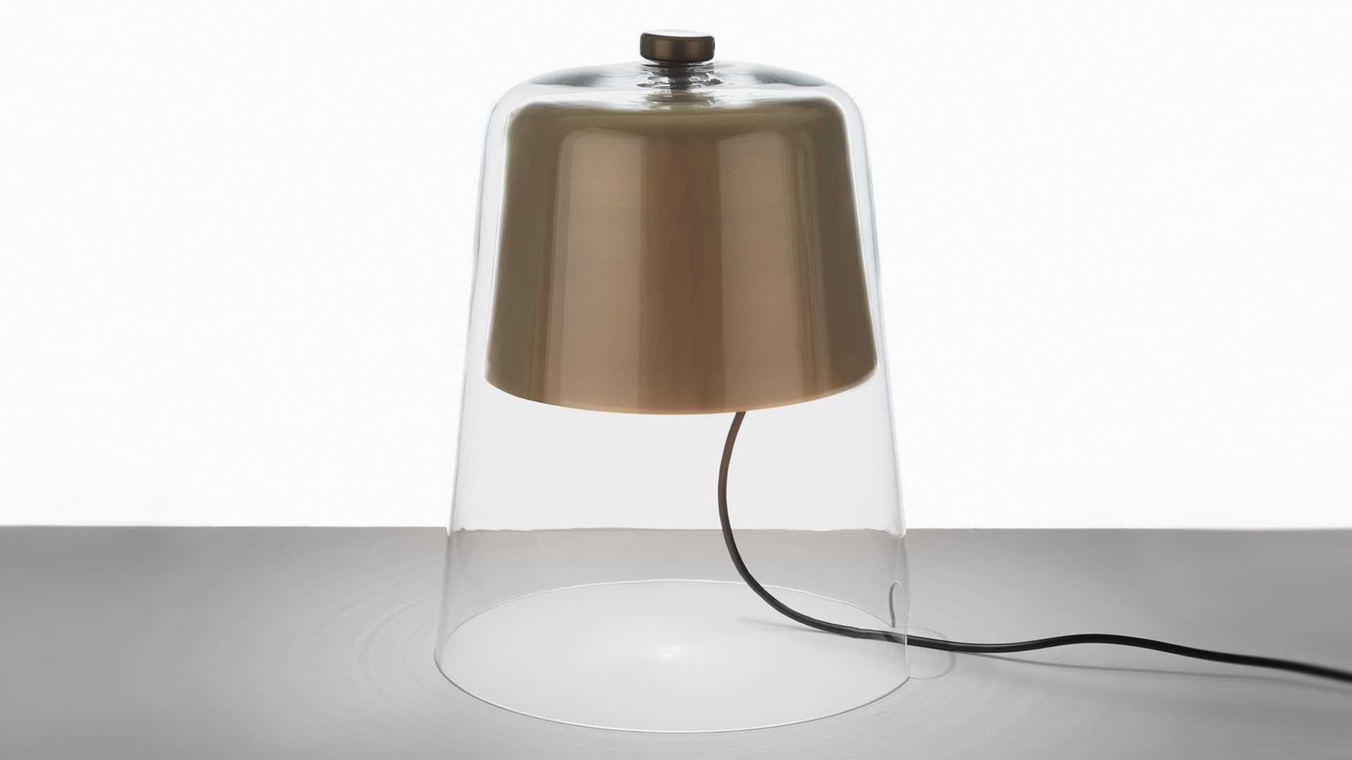 Sam Hecht designs Semplice for Oluce, a table lamp consisting of a single blown glass bell, acting as both the diffuser and the base for the design. The lower end, in fact, rests directly on the floor, while the upper part of the bell is covered internally by a metal cap which encases the luminous bulb. The extreme constructive synthesis of the structural elements of this product is accompanied by painstaking attention to details and finishes: the sophisticated galvanic processing of the head, the rotary dimmer positioned at the top of the lamp and the metal braid wires. Thanks to this pairing, the ‘simplicity’ of the forms, from which the design adopts its name, is therefore enriched with sophisticated finishes and details, resulting in a product that is decorative and lightweight at the same time. Presented at Euroluce 2013, Semplice won that year’s prestigious “Best British Design Award”.