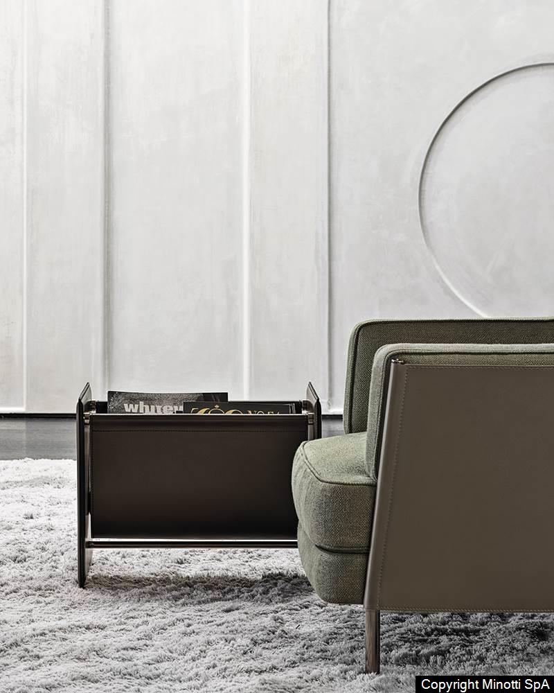 A furnishing accessory with an obvious sartorial style, designed as a satellite of the West seating system, but also perfect in other original arrangements.