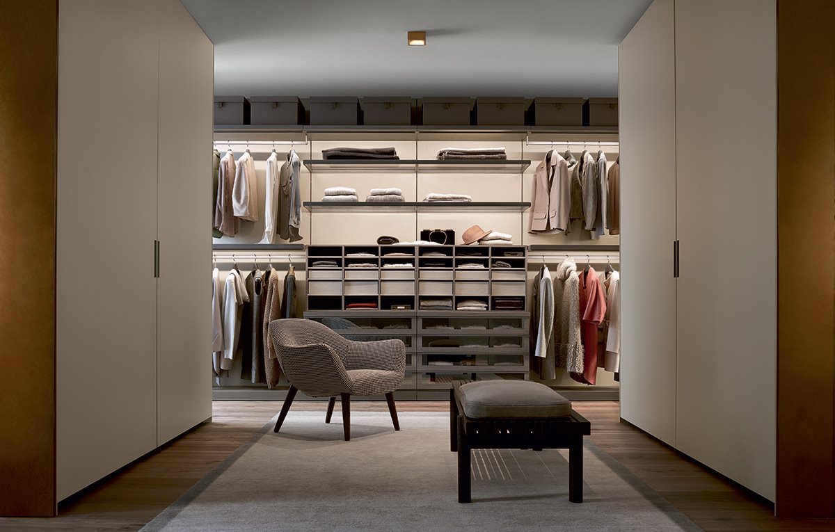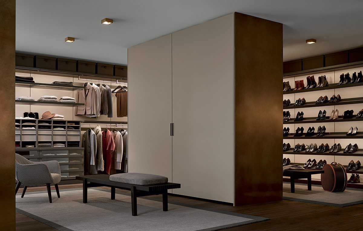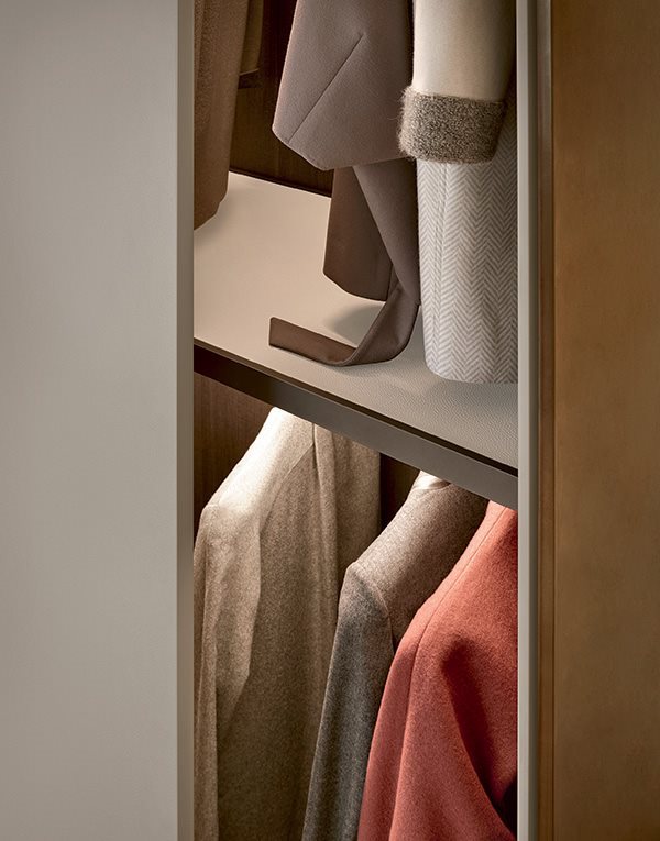 Skin, design R&D Poliform, is a wardrobe characterized by the peculiar door working. The versatility of the Senzafine system allows it to be placed in every room, offering the greatest space in any situation.