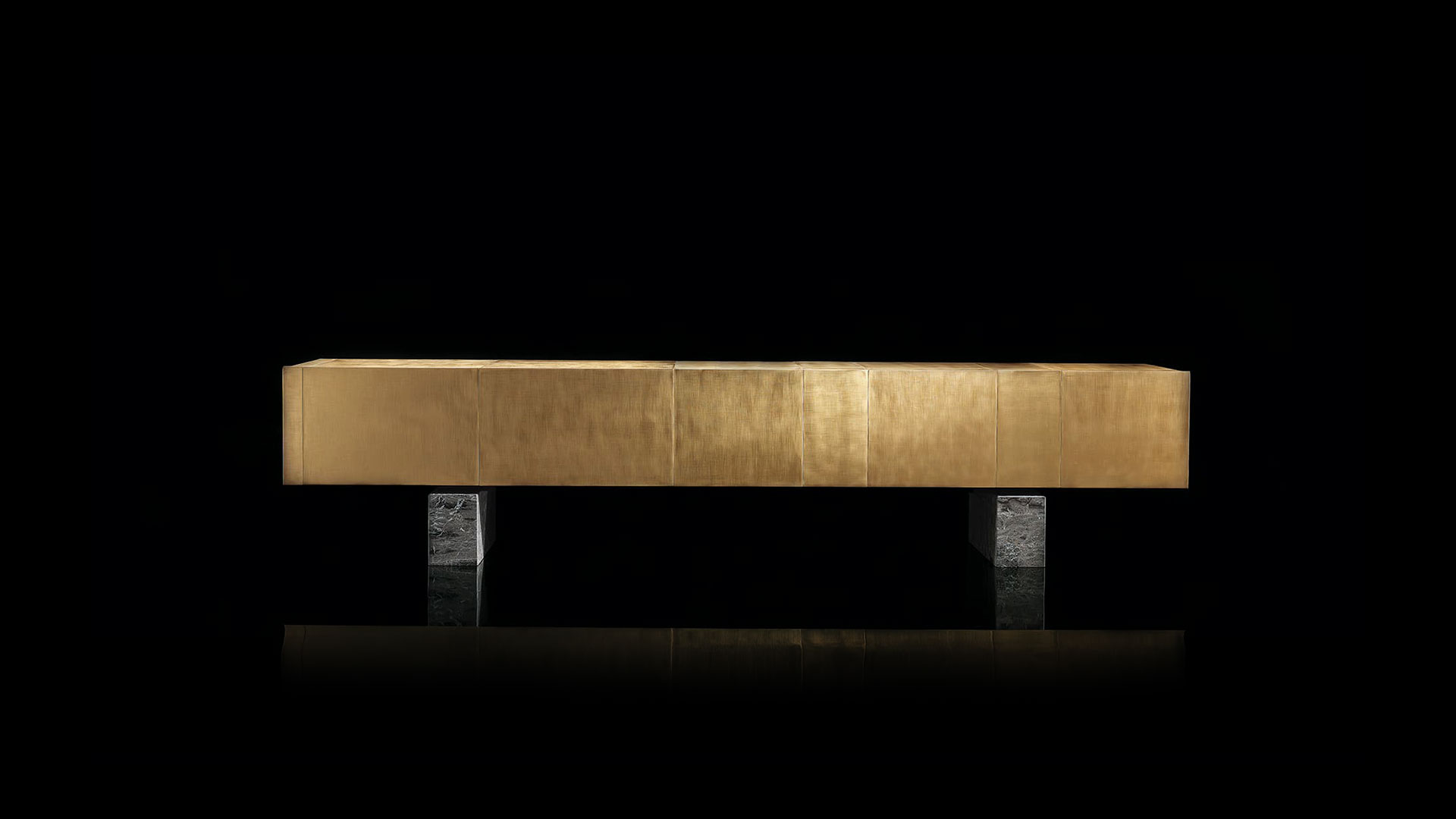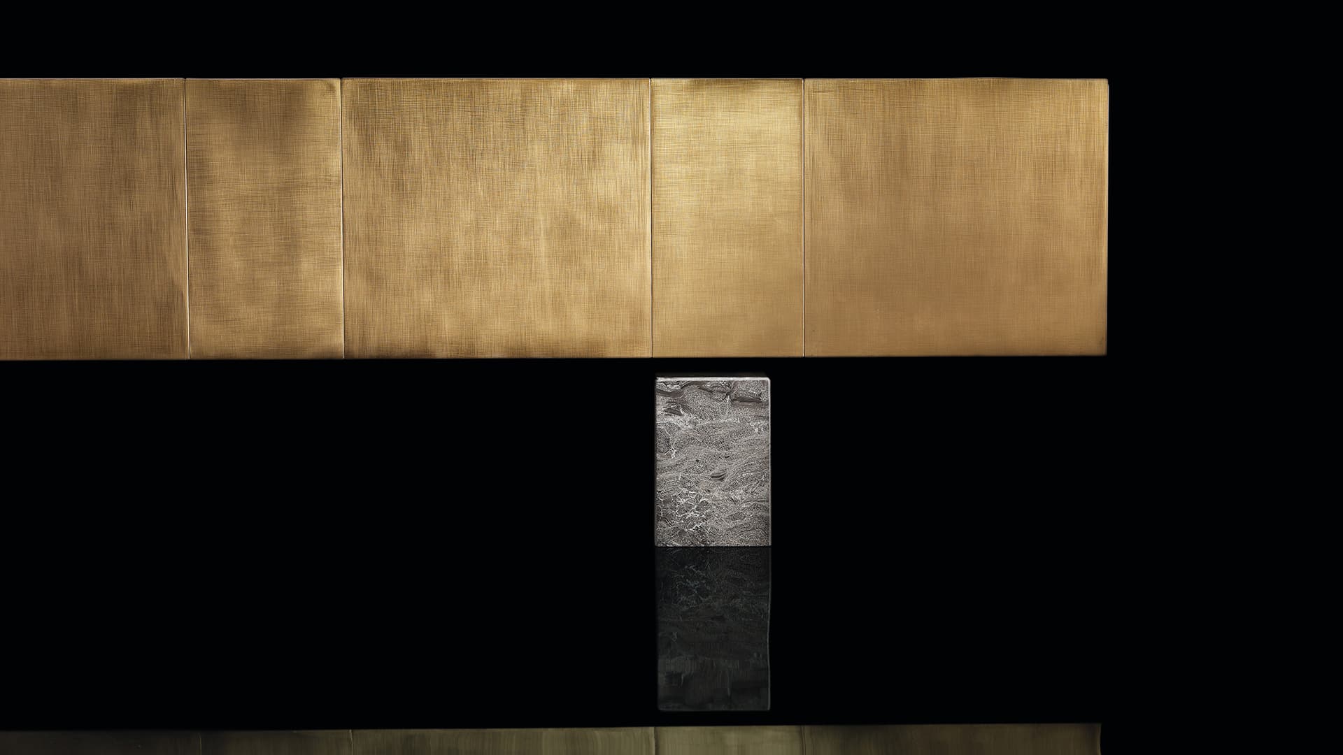 FINISH Brass hand-burnished using traditional techniques, steel finish Burnished Platino, Burnished Titanio, internal black Eucalyptus Thermowood. Wooden version in heat treated woods or swamp woods as our samples, oil finish based on natural wax and water. Bottom-hinged mechanism for soft opening and closing. Stone version in 2 cm stone of our range.